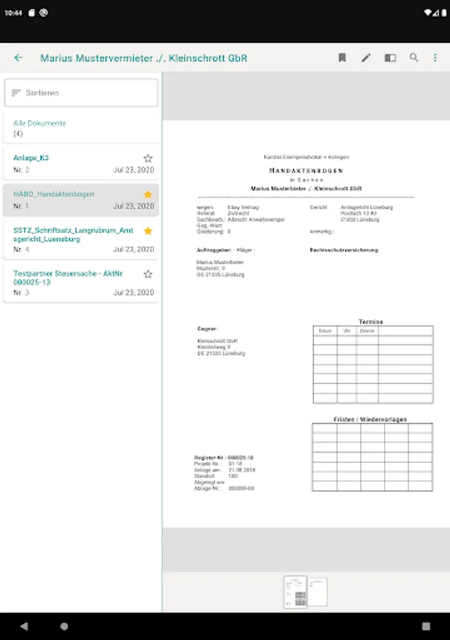 Use your tablet as a mobile digital file with DATEV lawyer classic in combination with DATEV lawyer file mobile. Even the most extensive files can be easily taken along. Features such as cross-file search, markers, notes and bookmarks make working a lot more comfortable than on paper.