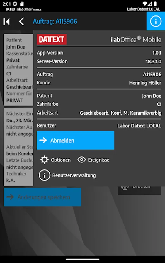 A special highlight of the DATEXT iT-Beratung is the app available for the ilabOffice® SQL, ilab Office Mobile, iOM for short, for field staff.