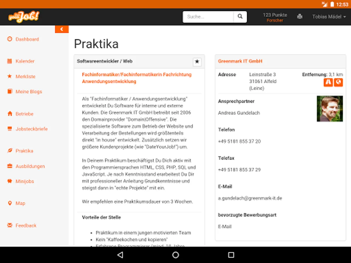 After your registration you can not only information in the app, but also under www.dateyourjob.de retrieve and change. The use of the website is also possible without App.