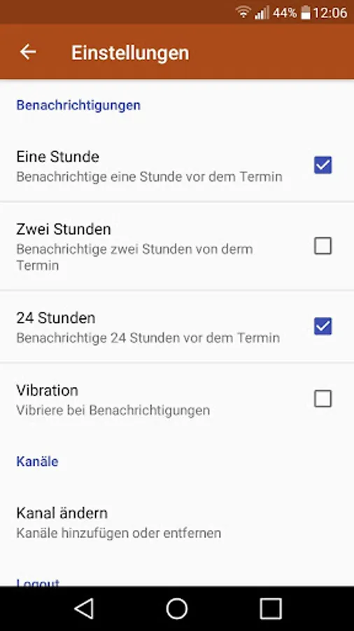 For appointments, you can be notified 24 hours, 2 hours, or 1 hour before.