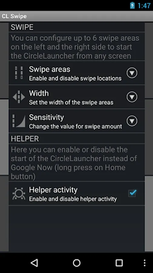 !NEW! swipe areas to start the CircleLauncher from any screen