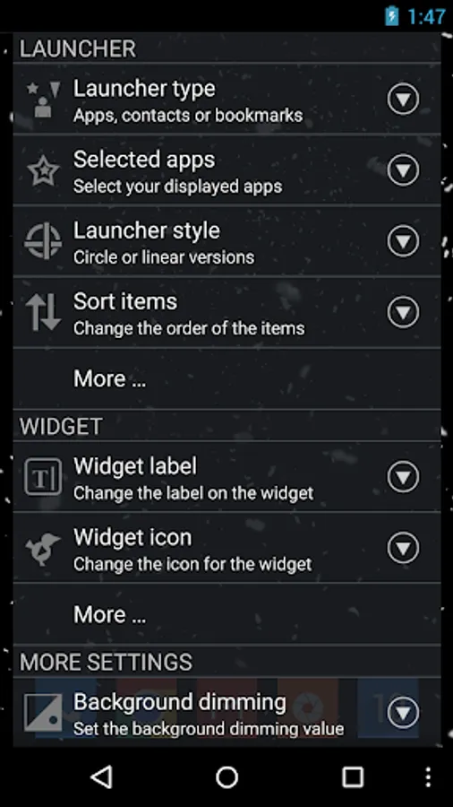You can add some frequently used apps or contacts to this launcher and start those apps or contacts with one click from a circle, a horizontal or a vertical line. Use the included launcher icons, load your own image or use a icon from any icon pack (CircleLauncher icon packs, ADW and Go Launcher icon packs supported). If you slide over the icons, they are animated a little bit mac-like ... just try it!