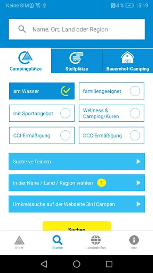 Are you looking for a 4-star place? Your parking space should be directly at the sea? Or is a farm camping only a place with riding possibilities in question? With our advanced search function, you can easily filter according to many criteria: whether country / region / keyword / or refined search - you can find everything.