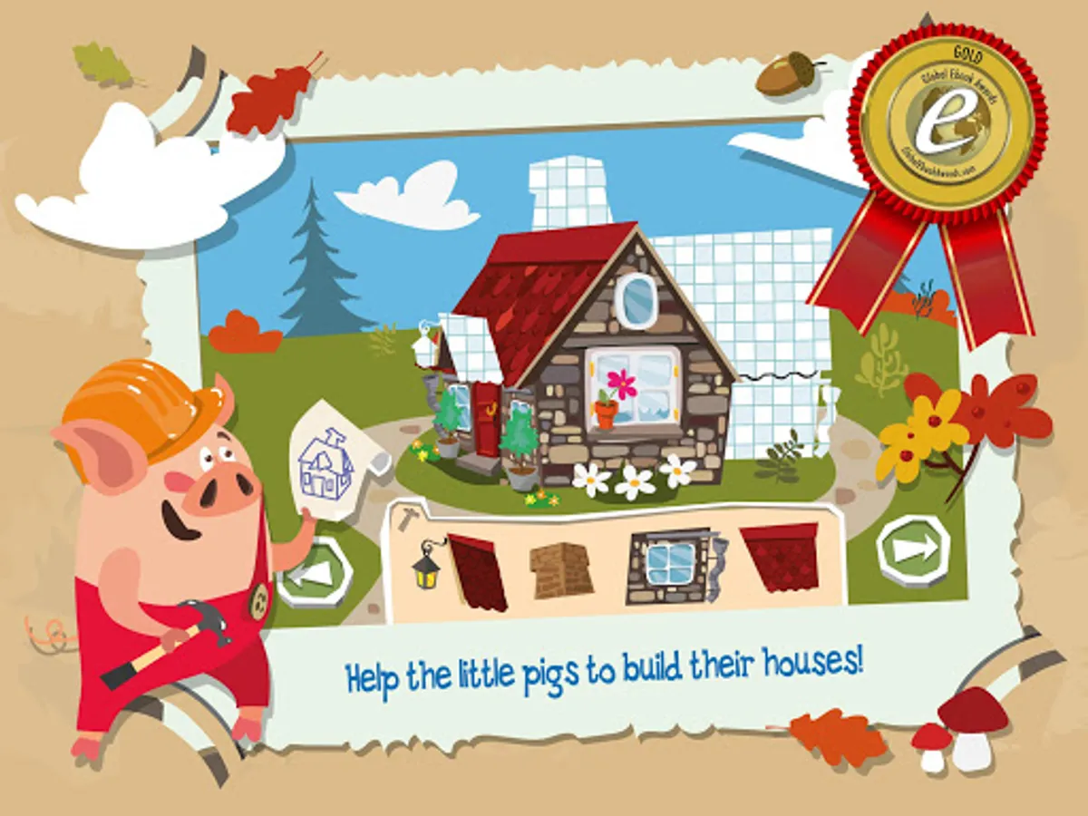 Relive and rediscover the story of The Three Little Pigs together with your child! From the very beginning, we wanted to create an app that parents and children could use together in order to enhance the learning experience. For that reason, particular attention was paid to ensuring that the app would appeal to young and old alike, and to building a world that was entertaining and engaging in equal measure.