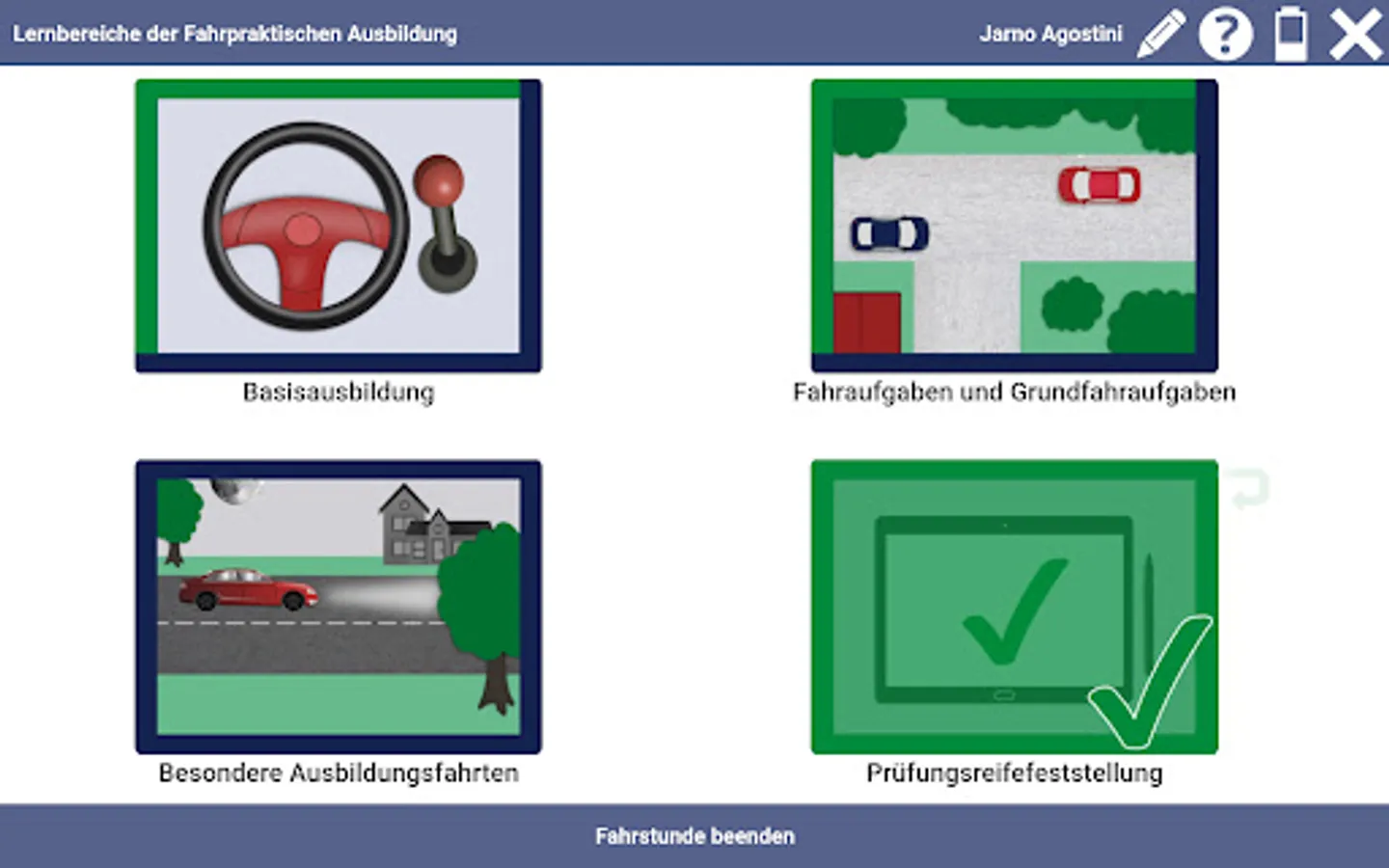 The direct connection of the tool to your central driving school administration immediately assigns all data on the person and on the learning status in theory and practice to the respective students: inside, can be viewed at any time - ideal for determining commitment, liquidity and test maturity. The result: Targeted practical training, precise presentation for the exam, legal certainty!