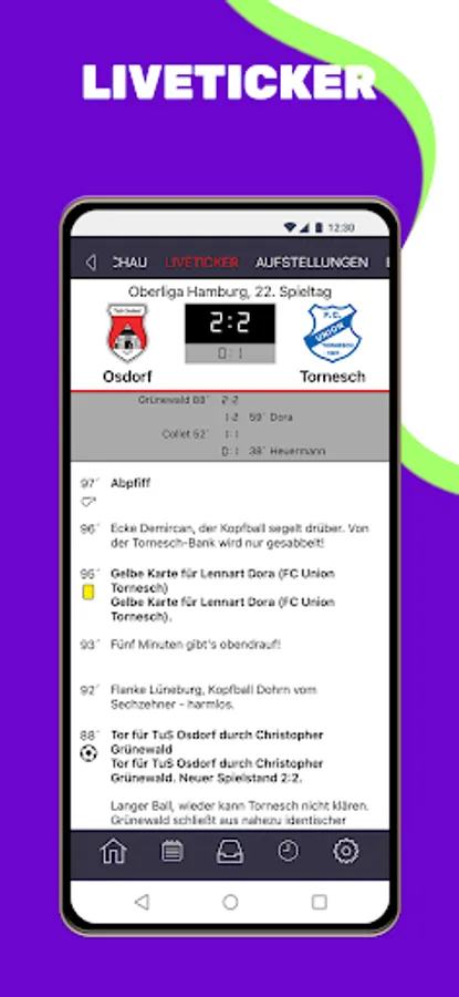 - Publish: Using the live ticker function, the user records all game-relevant information such as changes and goals, immediate entry of results, uploading a game report