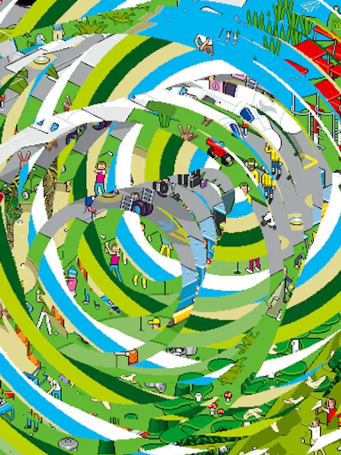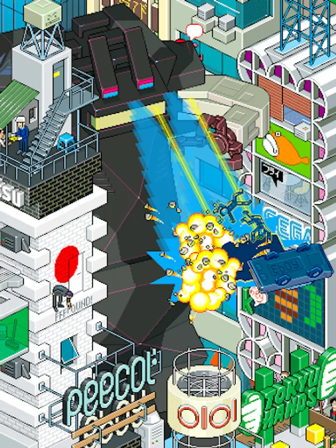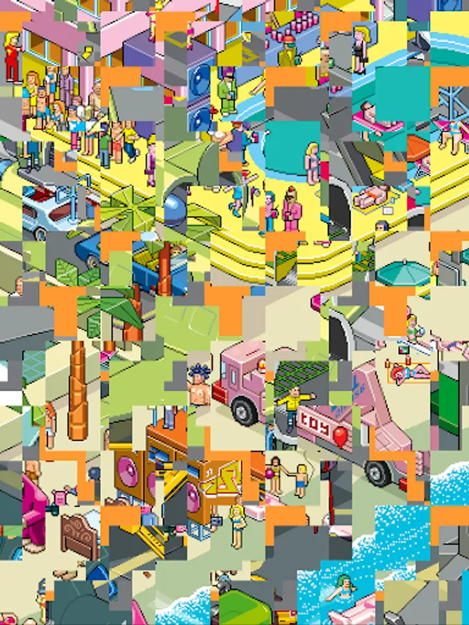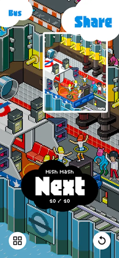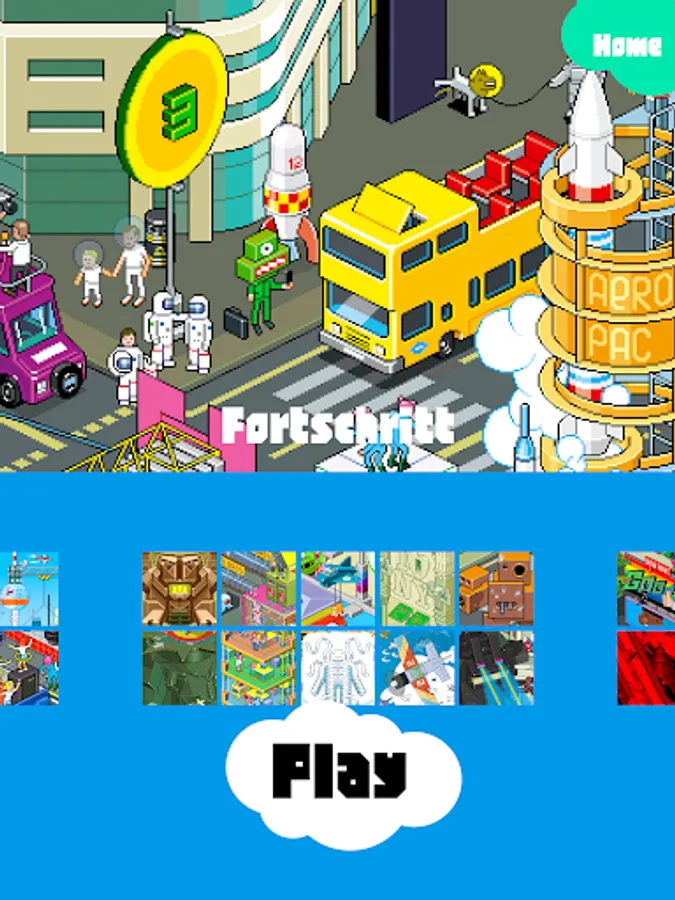 For the new "expanded" version of the game we massively expanded the pixel art puzzles - from the iPhone 3 to the iPhone X aspect ratio (320x480 points to 320x812 points) which means 70% more pixels per puzzle! The puzzles are now organised in packs of 10 and there is a new level selection scene in which you drive a bus through a pixel art city from station to station which adds a lot of fun. Additionally we have a new hard mode that unlocks once you have solved all levels. It messes with the tilt behaviour and adds visual effects to the puzzle layers.