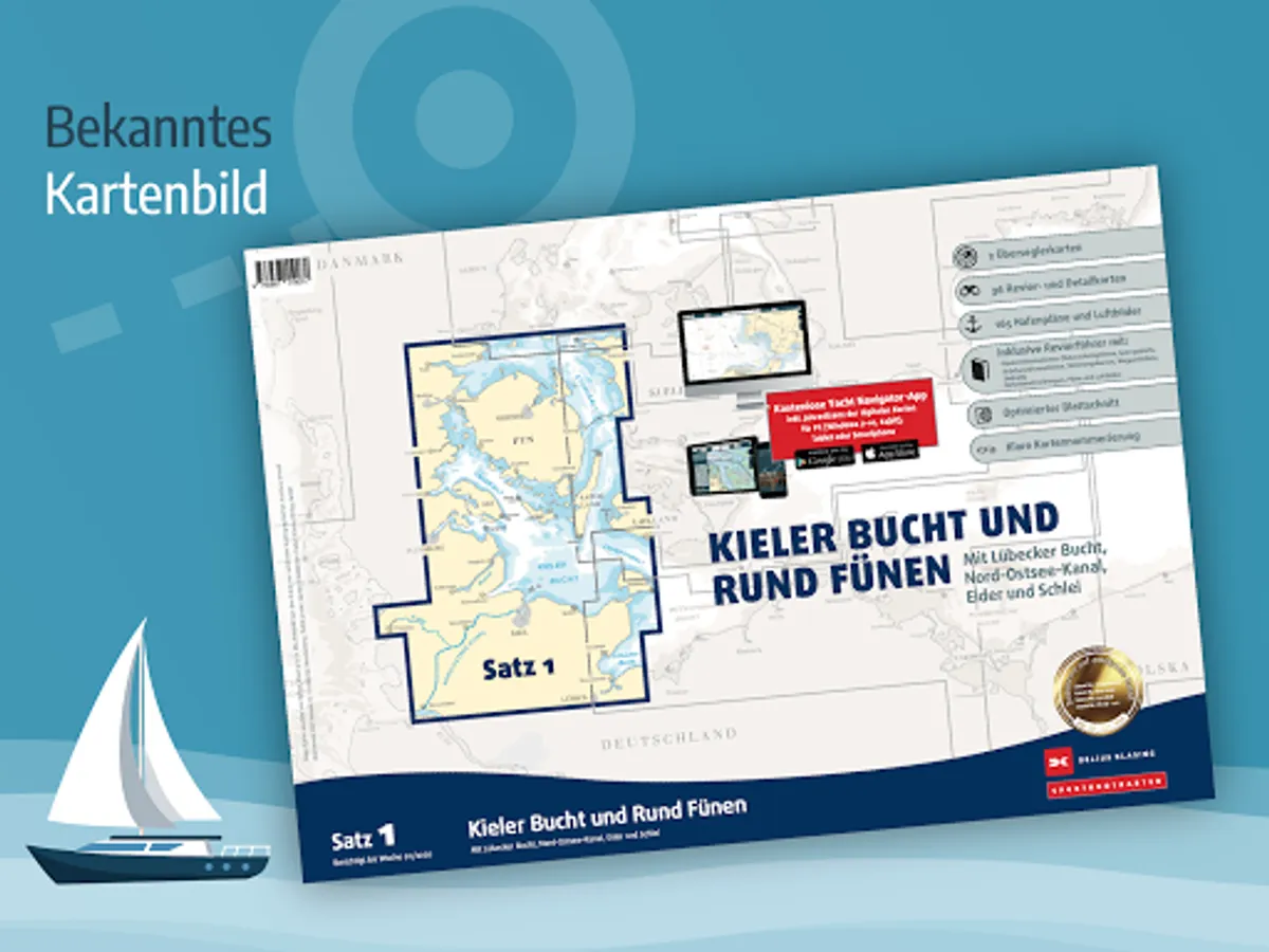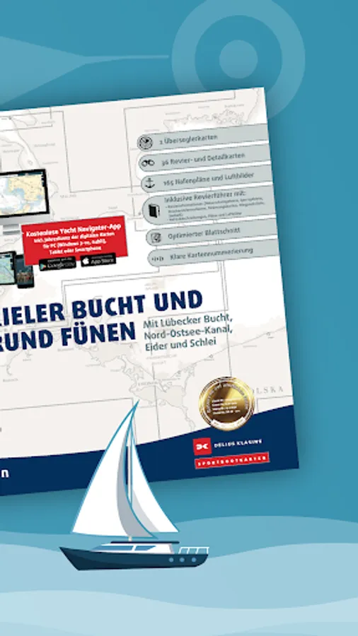 With the Yacht Navigator, you can easily and intuitively use your tablet or smartphone as a chartplotter in real time. The Yacht Navigator app is based on the maps of the printed inland and nautical charts of the Delius Klasing publishing house.