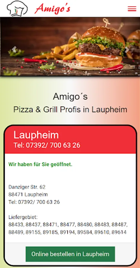 With the Amigo's Pizza Laupheim app, you may have the best pizza in town just a click away. We look forward to serving you with our app and delivering your food to your satisfaction. Bon appetit!"