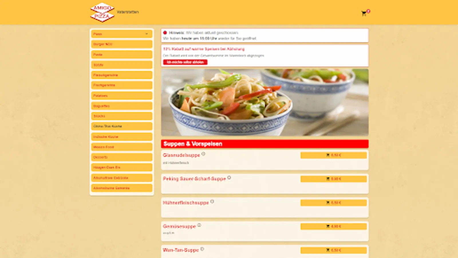 We cordially invite you to browse through our wide range of options. Whether you prefer pickup or a fan of our convenient delivery, we'll make sure you won't go hungry. And best of all, if you pick up your meal yourself, you will receive a 10% discount on all hot dishes.