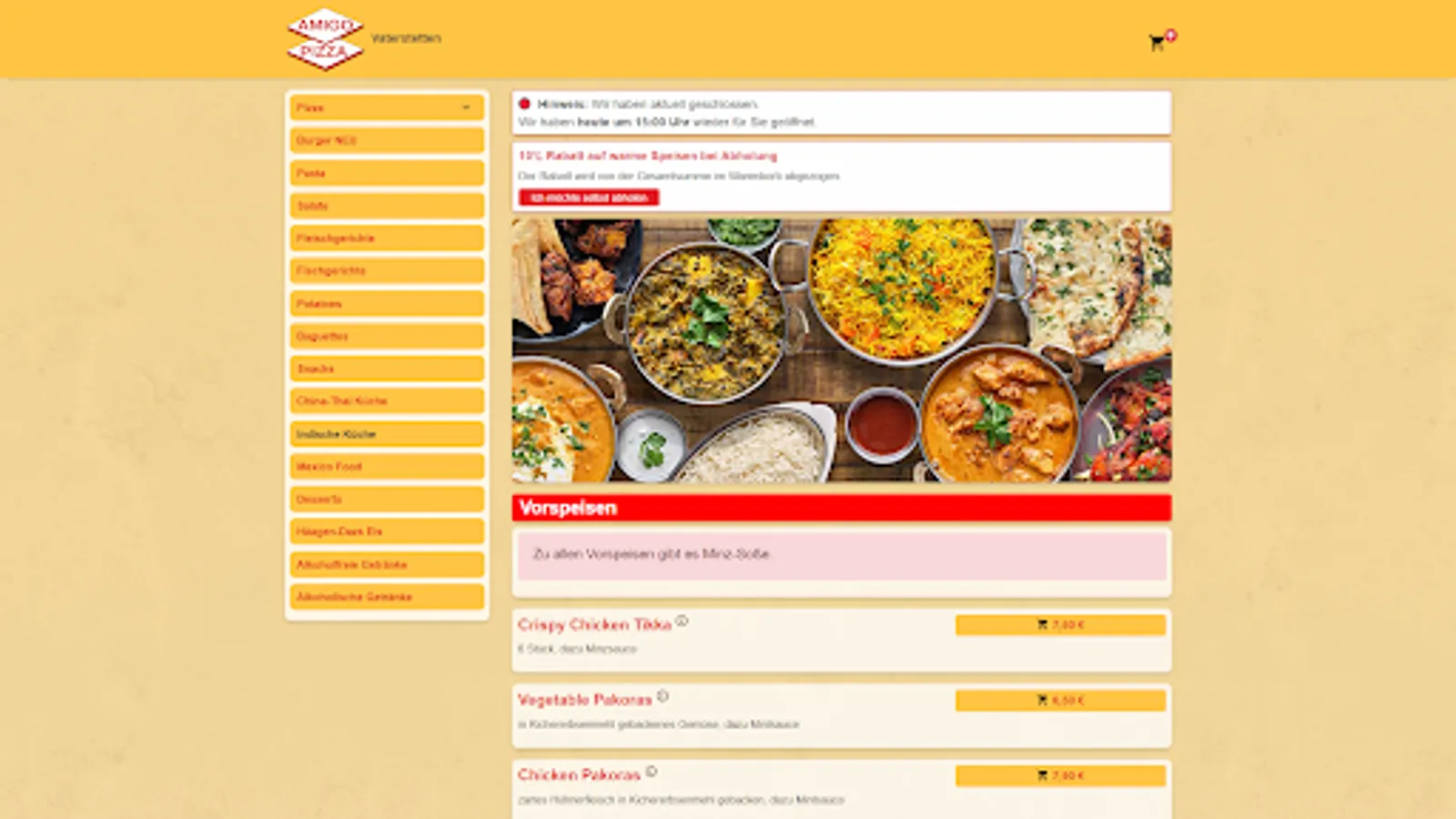 We look forward to delighting you with our delicious dishes. Order now from Amigo Pizza & Asia home service and let us spoil you!
