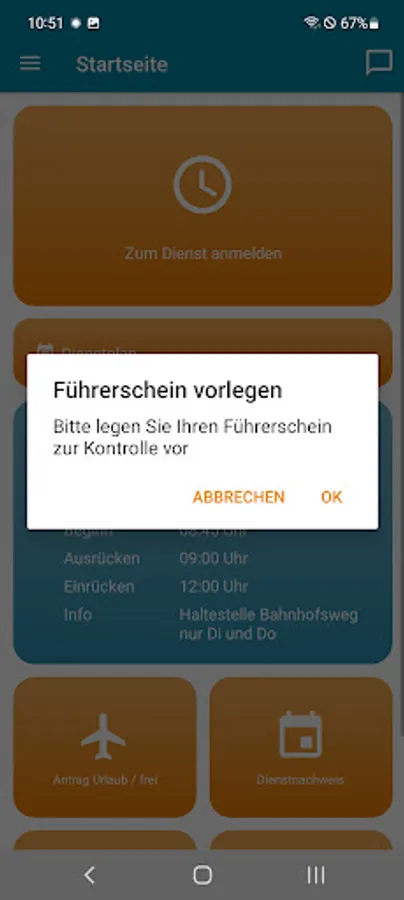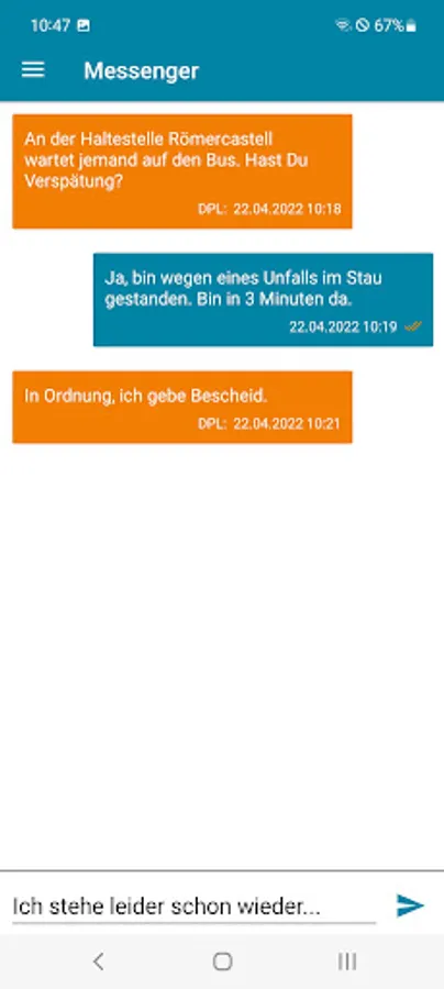 In addition, bus drivers can use the app to apply for leave and leave, as well as to report lost property and defects in the vehicle. The dispatcher receives corresponding messages and can, for example, decide on vacation and free applications. A messenger is also available for communication between the driver and the driving service, and driving licenses can be checked.