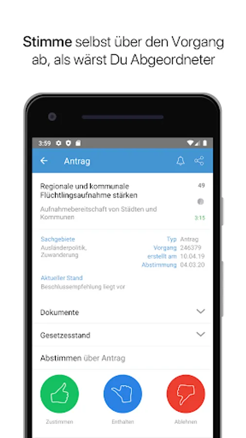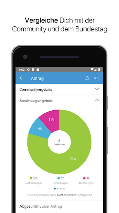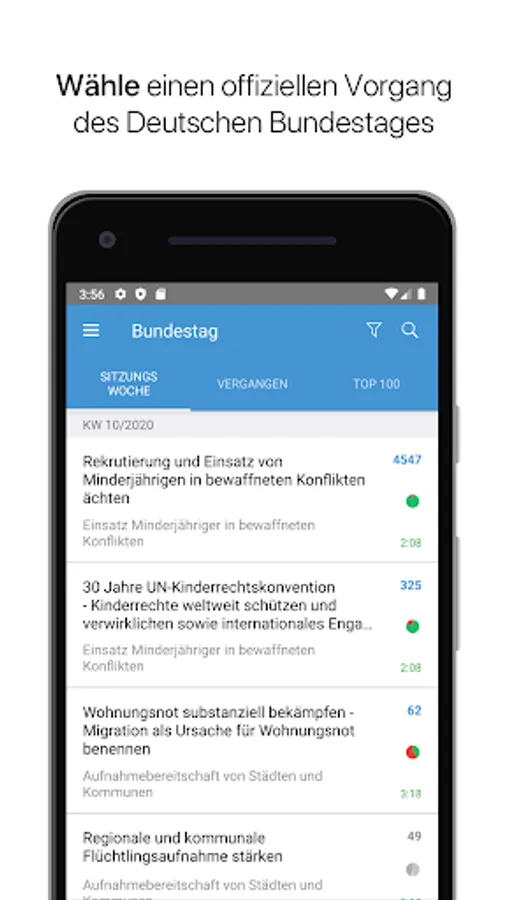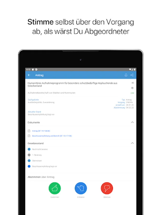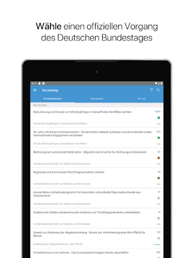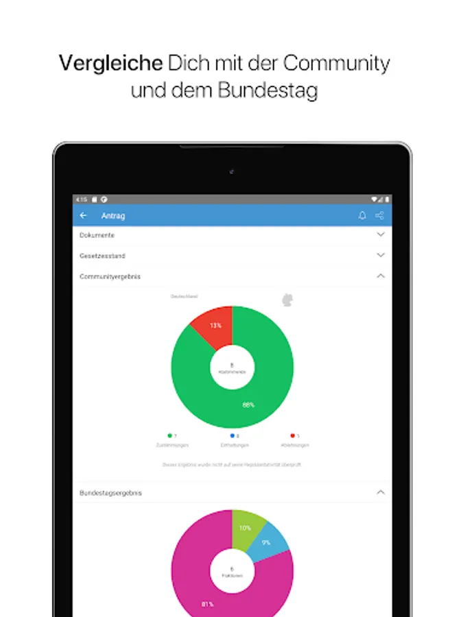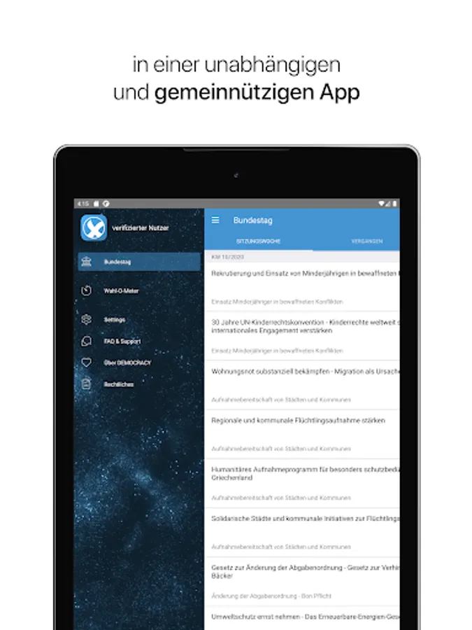 ... an independent and donation-financed open source app that has been providing you with playful and easy-to-understand information about current events in the Bundestag since 2018, ensures political transparency and invites you to participate.