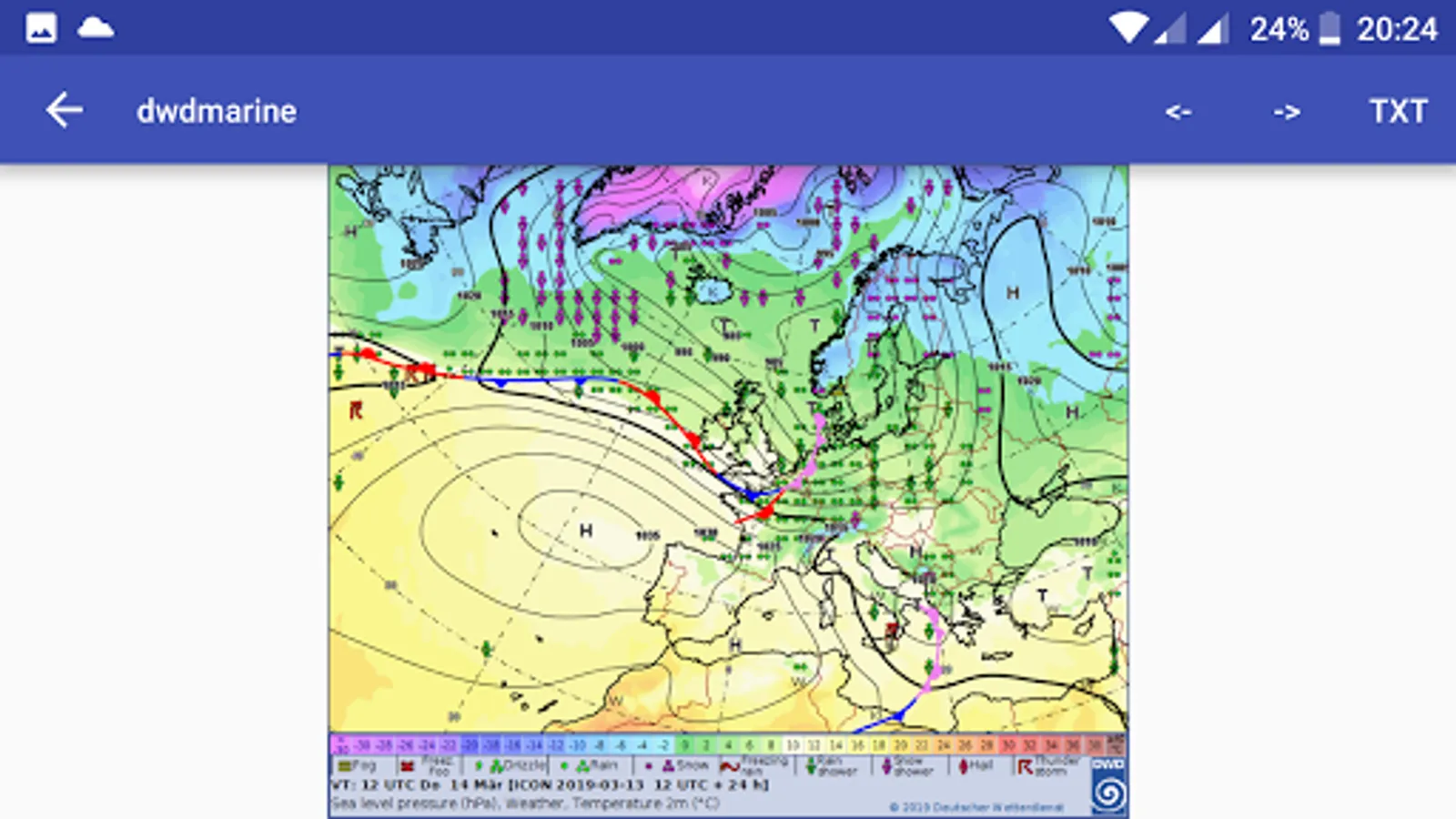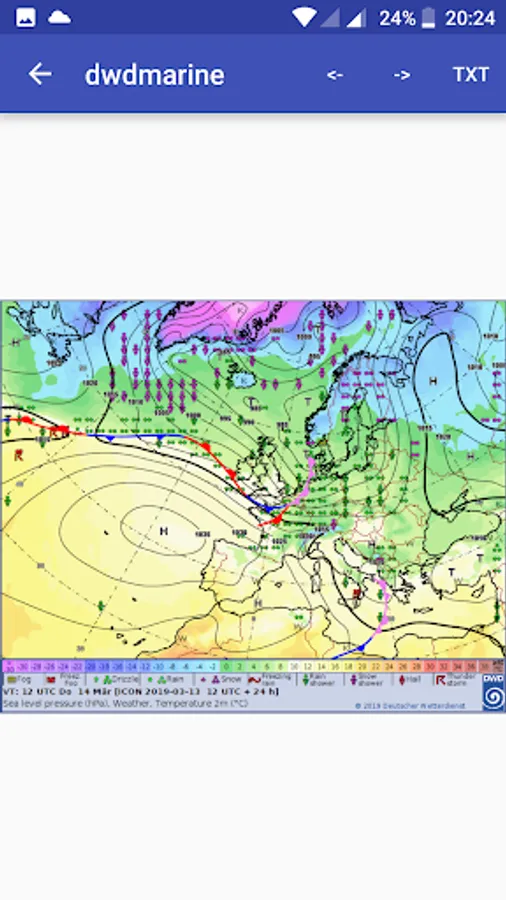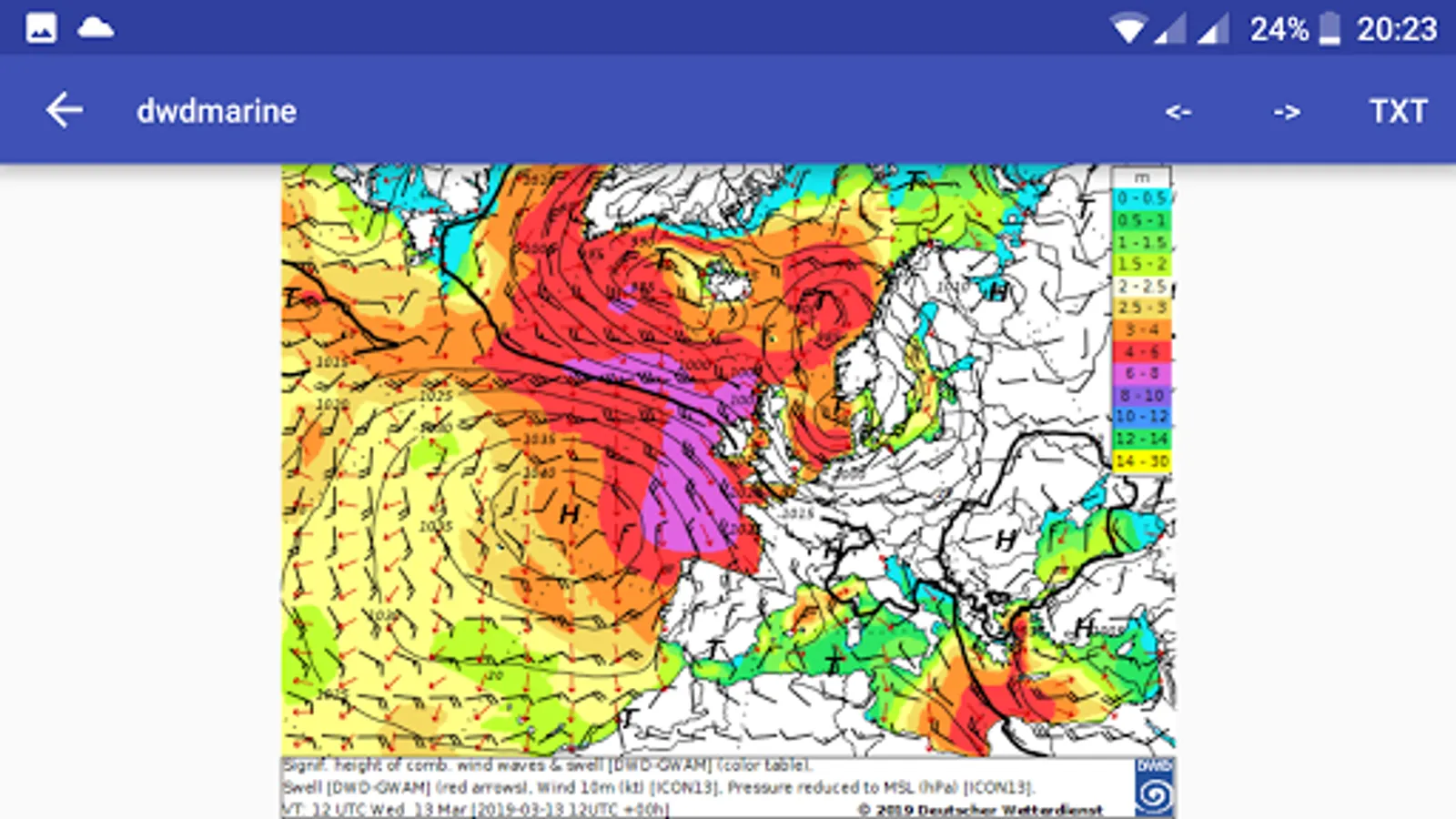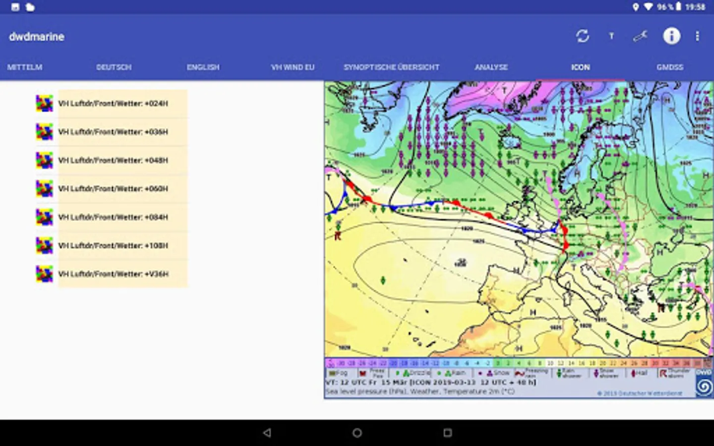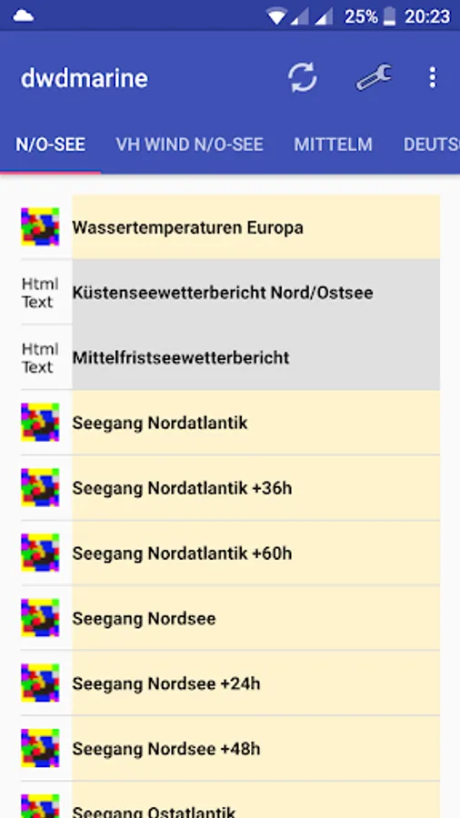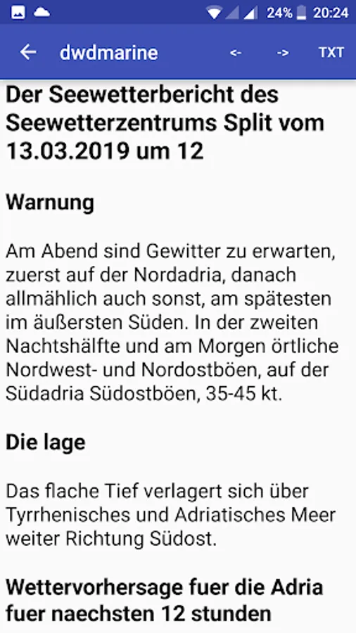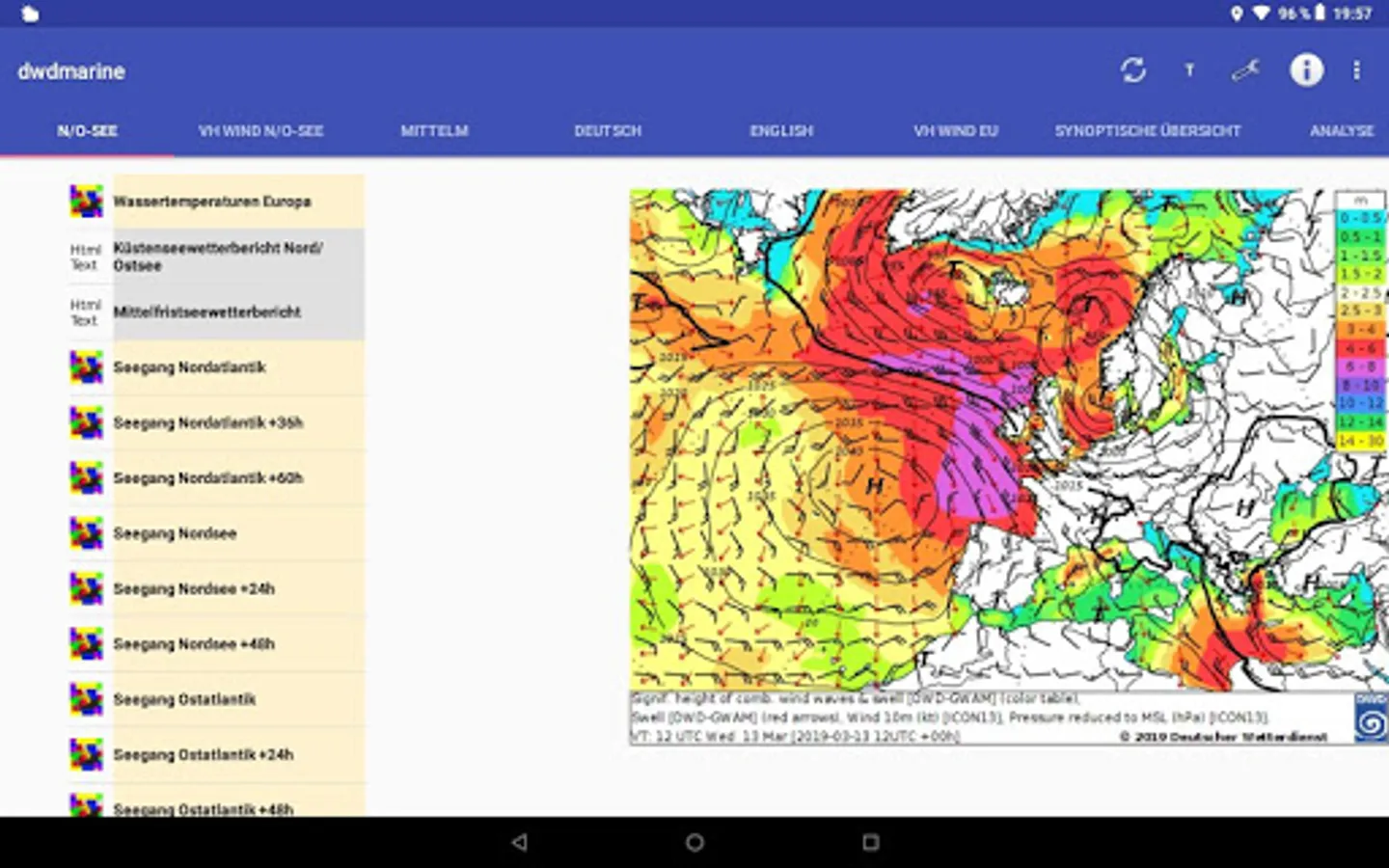 OFFLINE-enabled app for displaying sea weather data for the most part from the DWD.