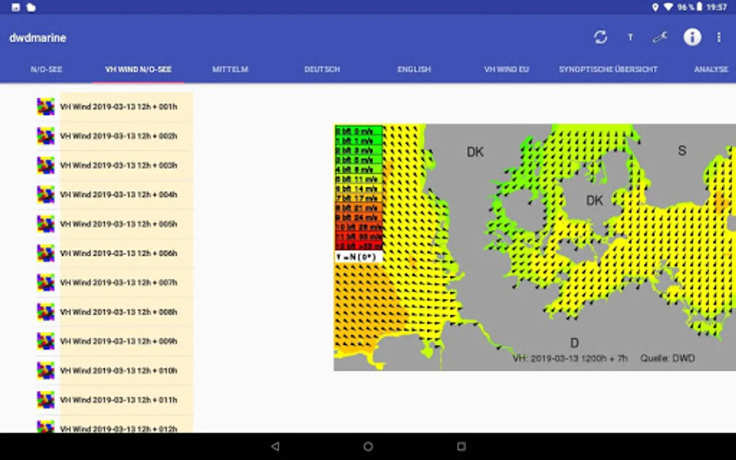 + Wind forecast North / Baltic from the source DWD