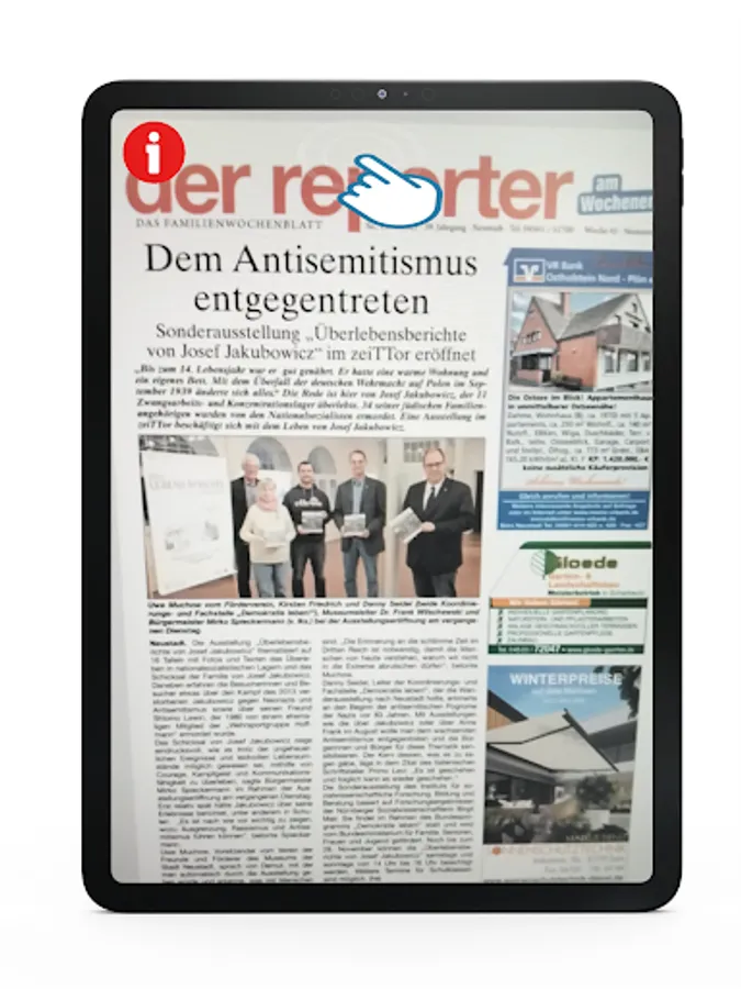 Immerse yourself in the new way of reading the newspaper. With the "Balticum AR" app we are building a bridge between the analogue and digital world of newspapers and offer additional content such as videos, 360 ° recordings, audio content and other surprises in addition to the printed articles. Wherever you see the “Balticum AR” symbol in the printed reporter, you can use the “Balticum AR” app to bring images, articles and advertisements to life, get background information and stay fully informed. Keep an eye on Ostholstein.