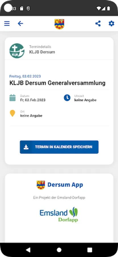 This app provides information on dates of clubs, groups and associations from the Dersum in Emsland. Simply select your group, the desired period and have the local appointments displayed everywhere.