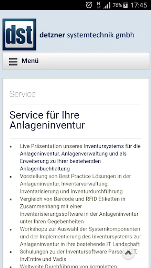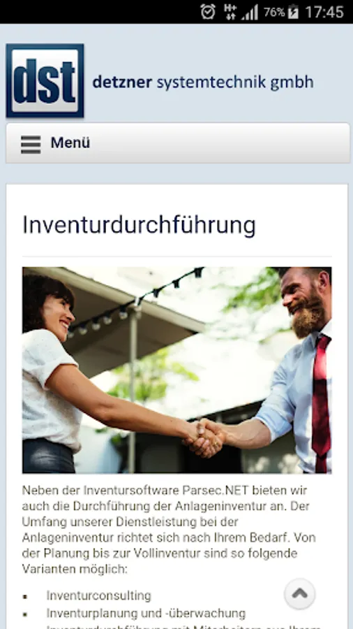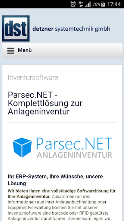 We, the Detzner Systemtechnik GmbH, are a specialist for inventory of fixed assets. it is our goal with its own inventory Software (Parsec.NET) that you perform your asset inventory more efficiently. In addition, we like to perform for the asset inventory by or assist you in planning. We have established ourselves in the market and boast a 20-year experience in Segemnt asset inventory. We very much support you from planning to programming to installation. Also during commissioning and training of our inventory software Parsec.NET.