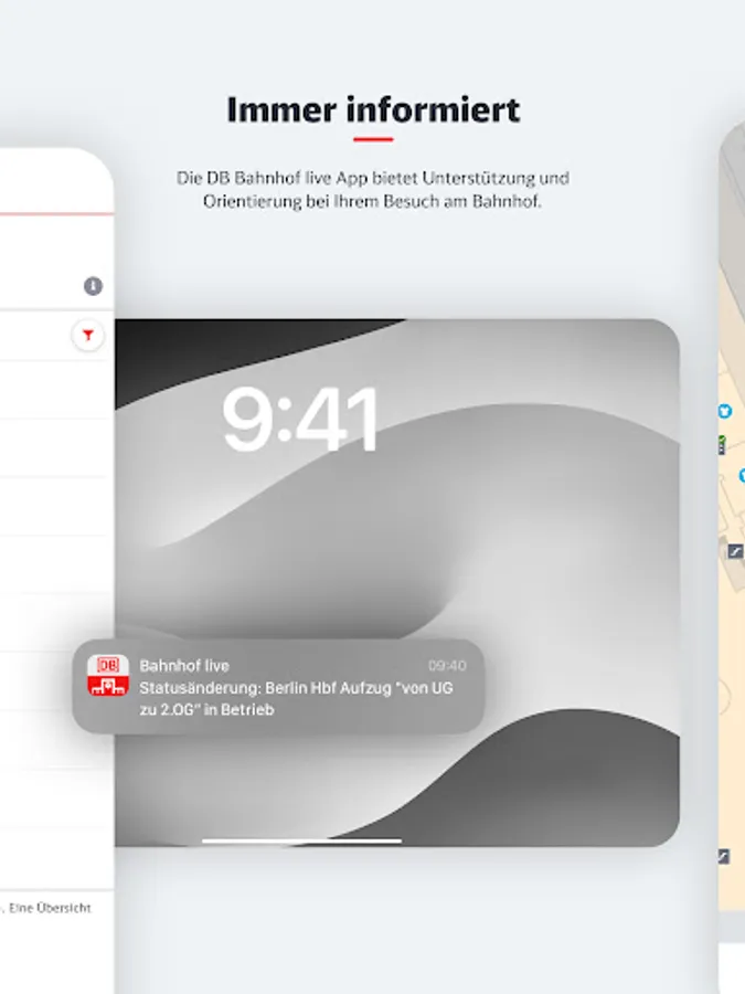 Whether you see just information on shops or your car sequence, the intuitive environment map is available anytime and helps you quickly to orient the station or in the area.
