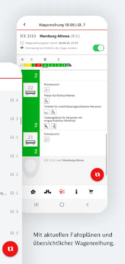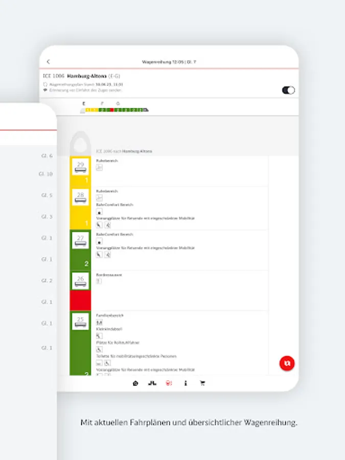 To begin your journey simply relaxed. With the current car sequence for ICEs, ICs and ECs save yourself a long way through the train to your seat. Upon request, we also inform you shortly before entering your train.