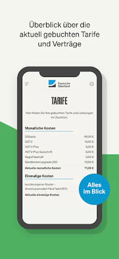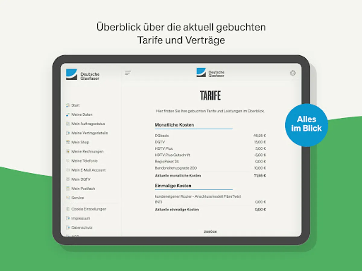 Everything about your fiber optic tariff in the MeinDG customer portal app.