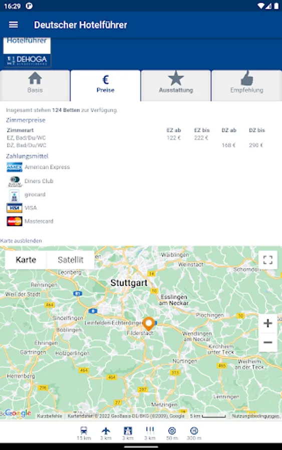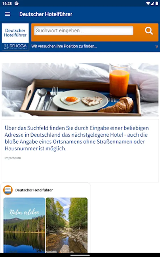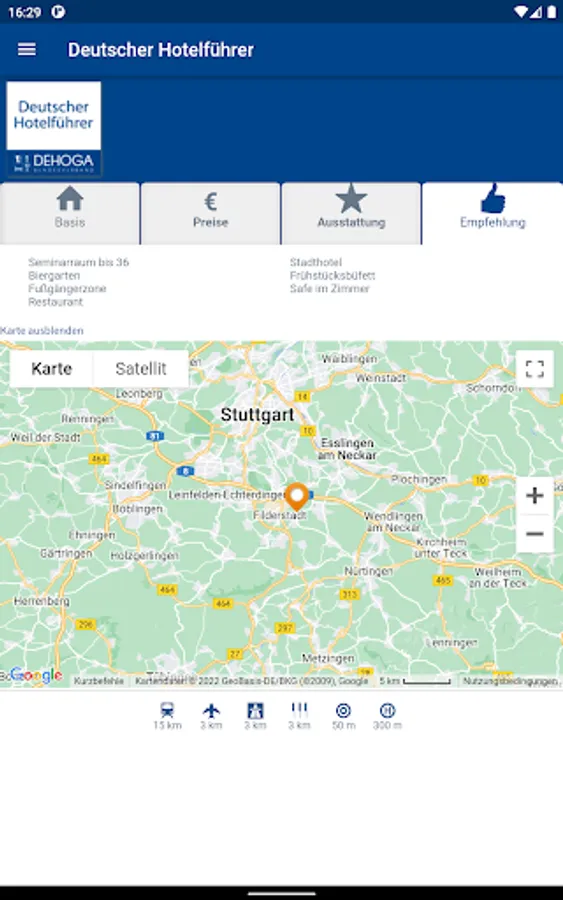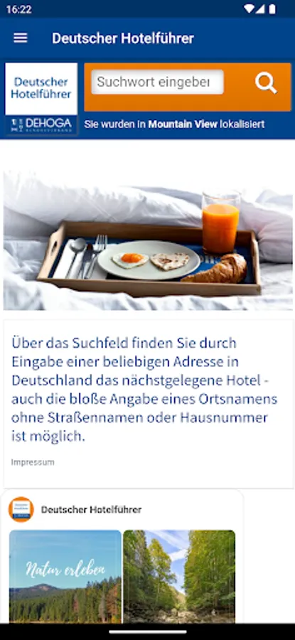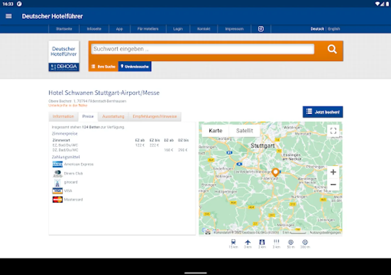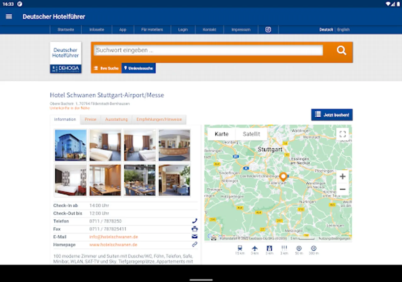 Whether wellness offers, city breaks, luxury suites or guesthouses - in the German hotel guide of DEHOGA (German Hotel and Restaurant Association e.V.) you will find a wide range of accommodations in different price categories. The German hotel guide presents its users with an offer from several thousand accommodation establishments. Including many cheap offers, such as hotel garnis or inns.