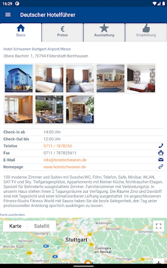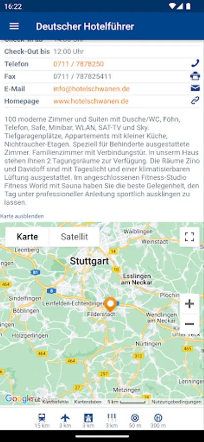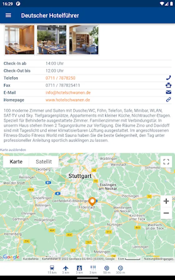 The app contains contact details and direct links to the hotels. Hotel reservations and bookings can therefore be made directly with the hotel and every cent stays with the hotelier!