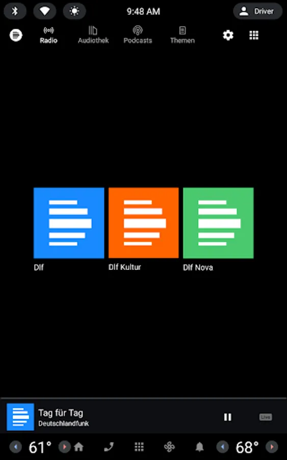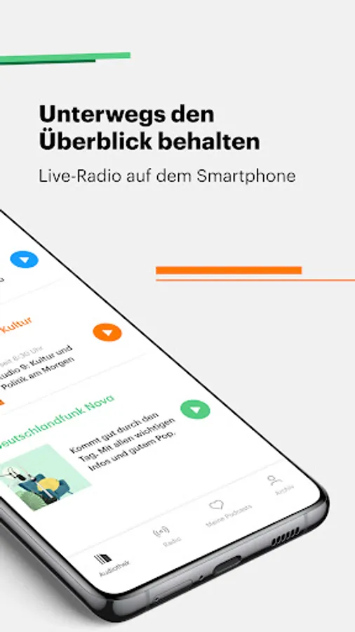 With our free and barrier-free app you can experience all three radio programs of Deutschlandfunk: Deutschlandfunk, Dlf Kultur and Dlf Nova. Listen to your favorite show, a podcast or a radio play whenever and wherever you want - in the live stream or as a download. Receive news from Germany and the world with political analyzes and interviews or listen to a concert - we offer you a diverse selection from the topics of Deutschlandfunk, Dlf Nova and Dlf Kultur.