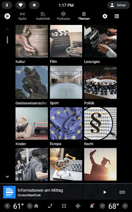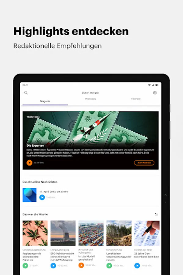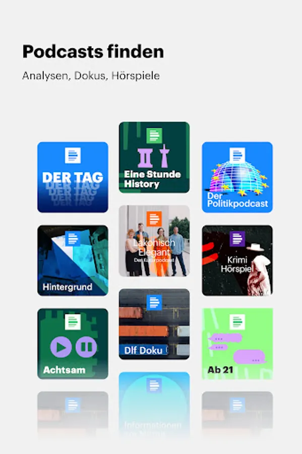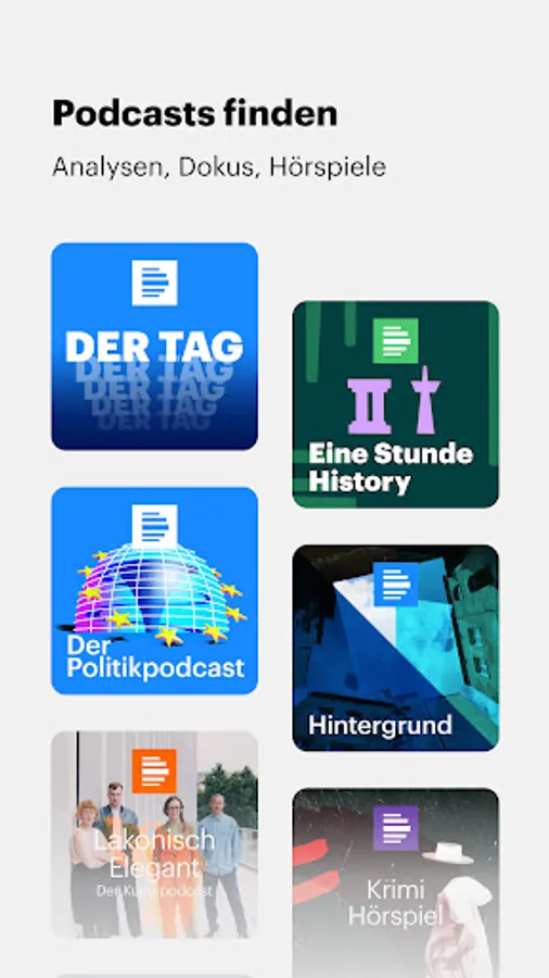 - Topic "Discovery": Be inspired by our editors - we put together a colorful mix of our programs Deutschlandfunk, Dlf Kultur and Dlf Nova for you: News and debates on current topics from politics, society and economy including analyzes and interviews. In addition, we have history and science articles, mindfulness podcasts and an overview of the most popular podcasts and radio plays for you - clearly presented with brief information on the articles including times