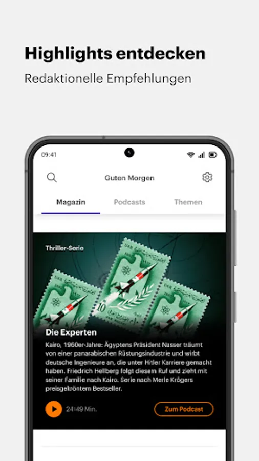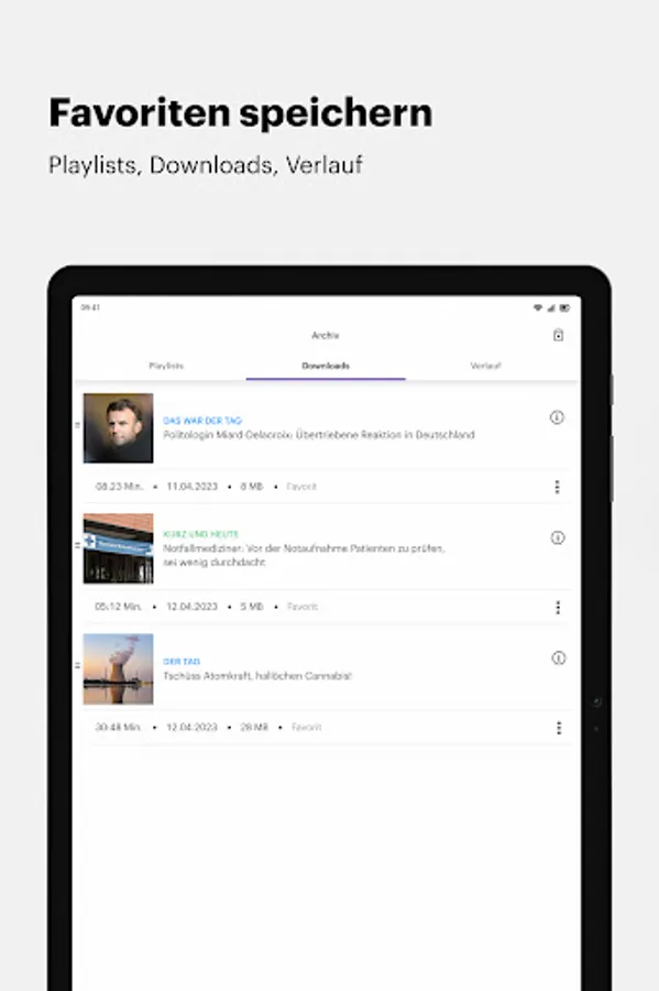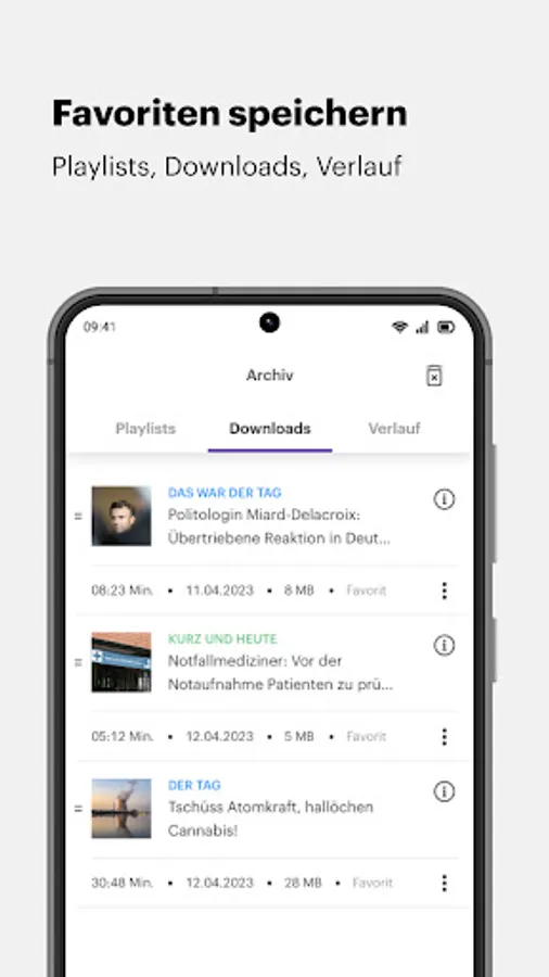 - Archive function: downloads, playlists and forwarding: create your own playlists under “my archive” with download option; so your posts can be called up at any time. To do this, select the desired option directly in your favorite podcast. Do you think the podcast or radio play is so great that you want to share it? You can also do that directly here – via social media, WhatsApp, SMS or e-mail