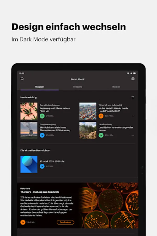 - Dark Mode: Thanks to the Dark Mode, you can now read even more relaxed and also save your battery.