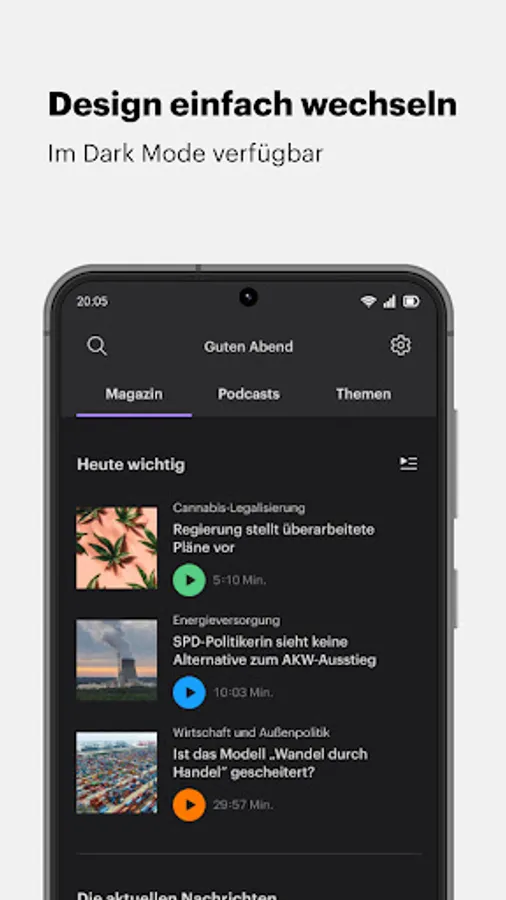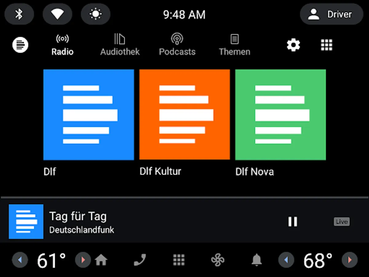 - Alarm function including snooze function: Let our moderators wake you up - you can choose whether you want to start the day with Deutschlandfunk, Dlf Kultur or Dlf Nova