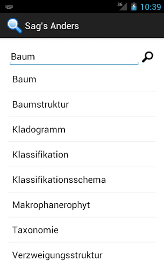 With "Sag's anders" you'll never miss the right German word. Simply insert your word and press the search button. And the app will find synonyms of this word.