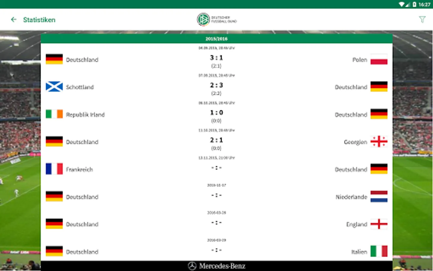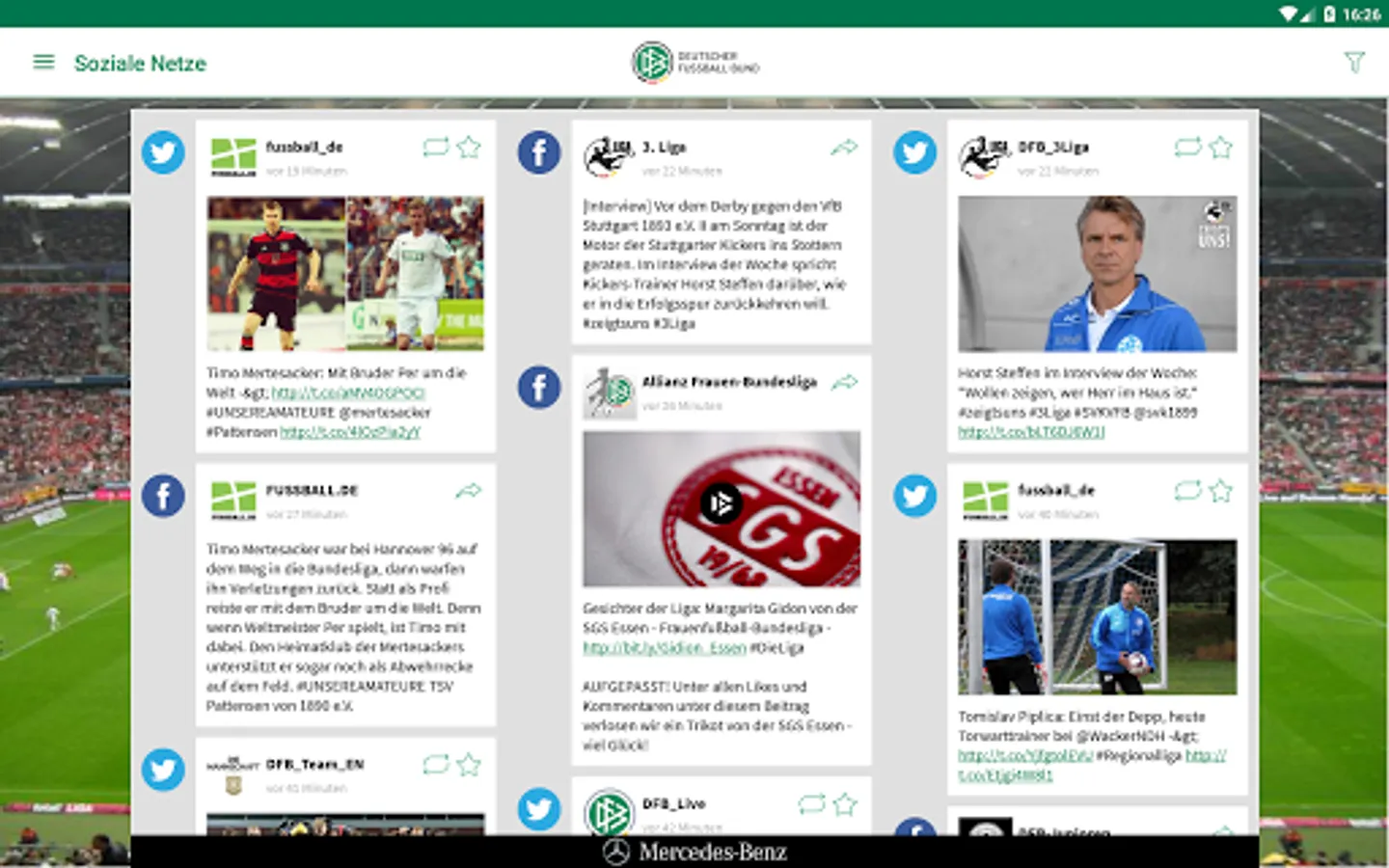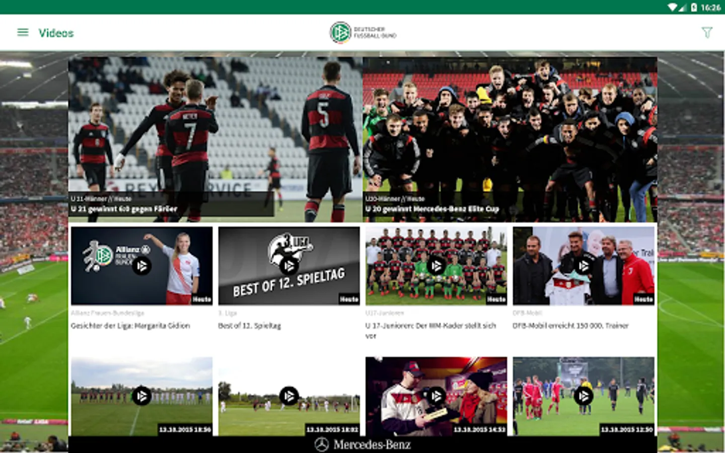 Football is enthusiasm, is devotion and emotion. All this you can experience at first hand - with the official app of the German Football Association (DFB) which now shines in a new guise. Just install and all news about the national teams, competitions, leagues and many other activities of the DFB always end up at lightning speed on your smartphone or tablet.