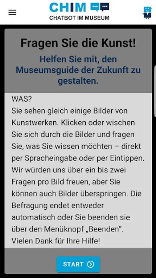 With your questions you support our research project CHIM in the development of the museum guide of the future.