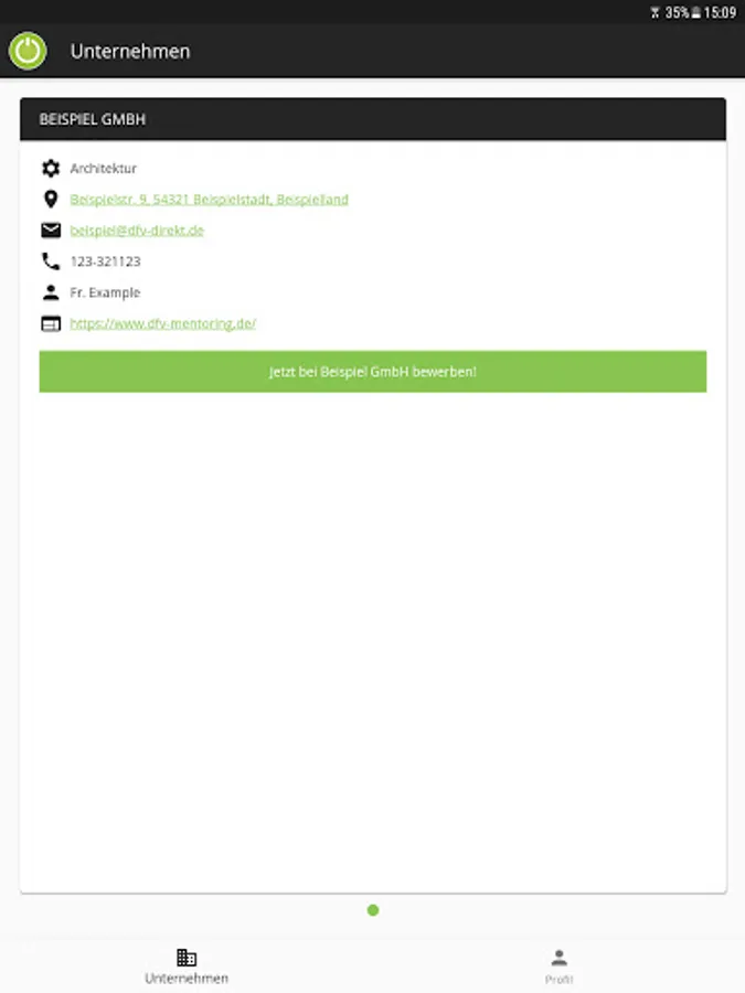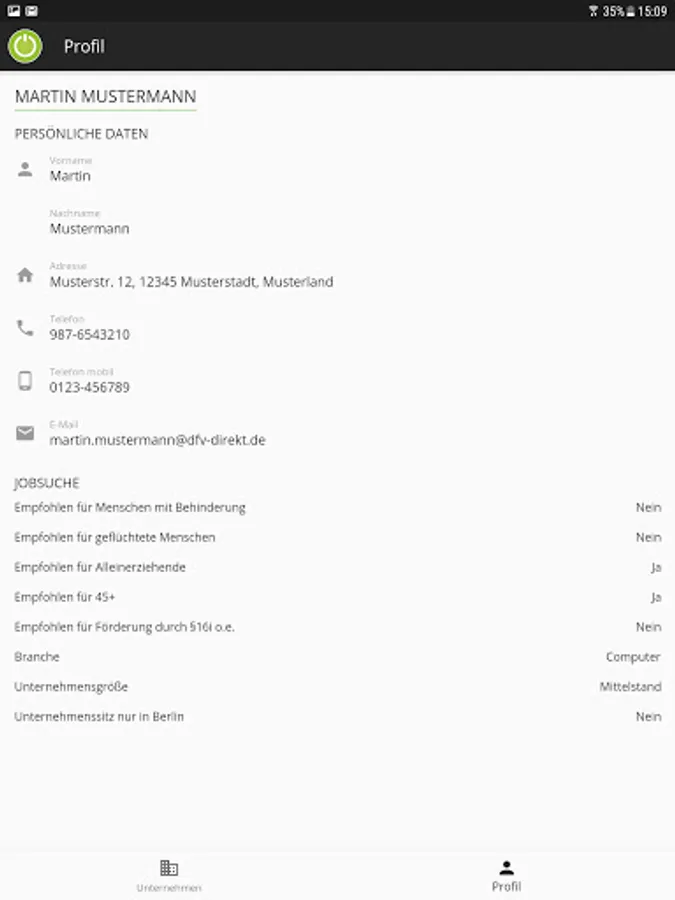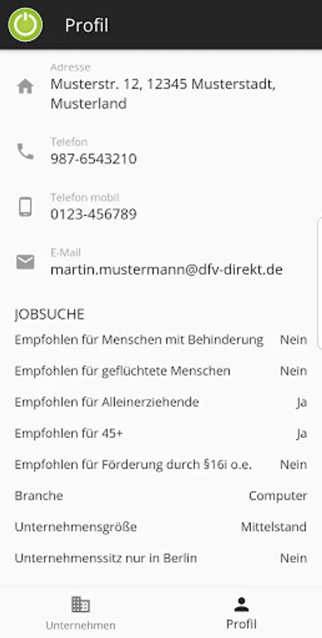 The app enables participants in individual coaching at DFV to simply send unsolicited applications to potential employers for eight weeks after completion of the measure. For this purpose, a meaningful curriculum vitae and a 20-second video clip with your self-introduction are drawn up. This can be sent to suitable companies suggested by the DFV at the push of a button.