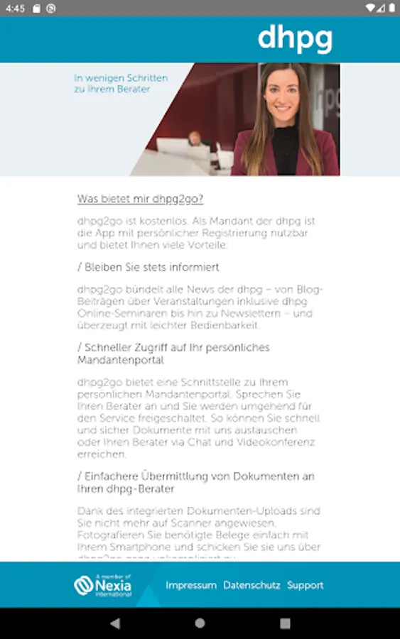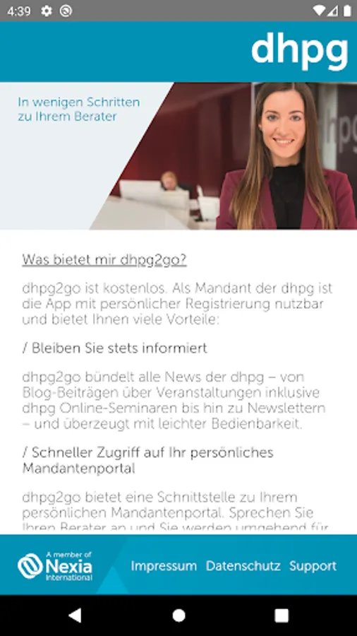 As a client of dhpg, the app can be used with personal registration and offers you many advantages - from easy access to the client portal to fast data transmission. dhpg2go is free.