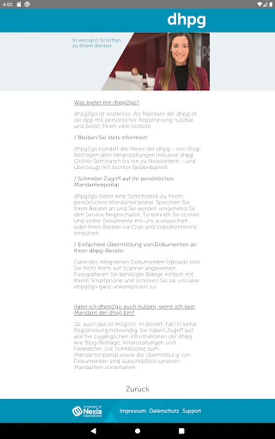 dhpg2go offers a mobile interface to your personal client portal. After registration you will be activated for the service immediately.