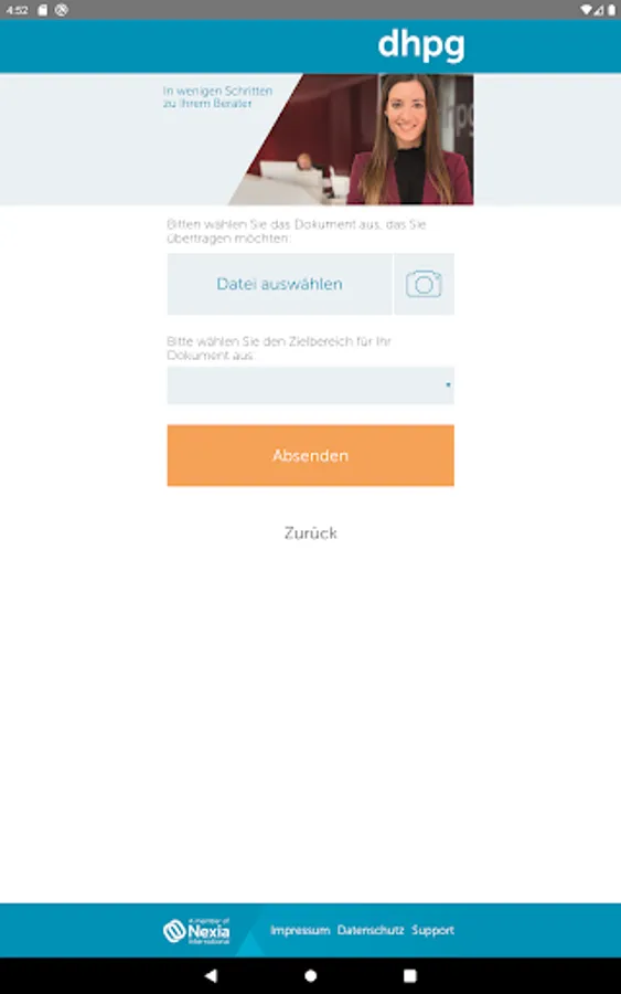 Thanks to the integrated document upload, you are no longer dependent on scanners. Simply photograph the required receipts with your smartphone and send them to us via dhpg2go.