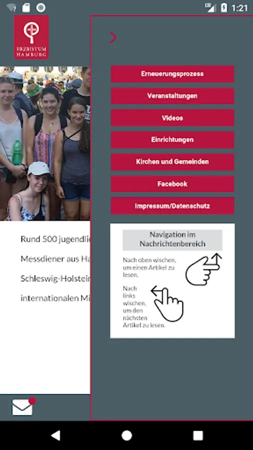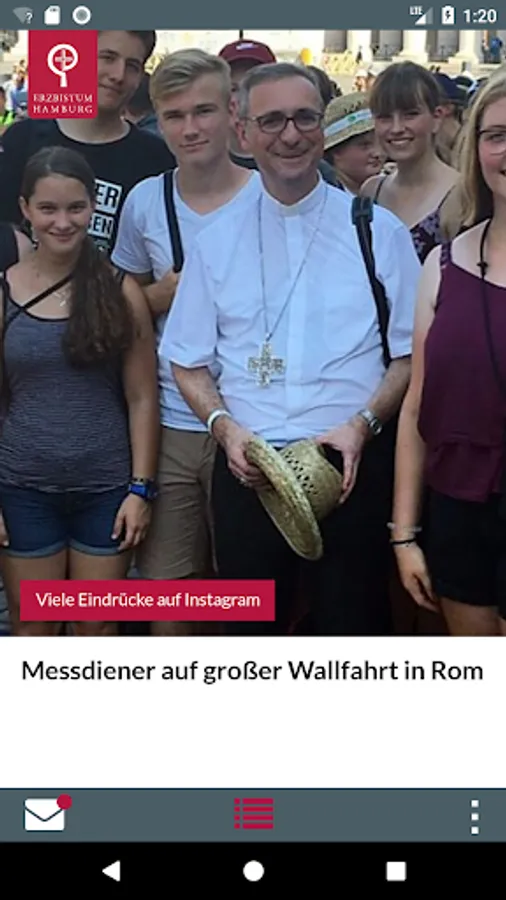 Official Android App of the Archdiocese of Hamburg. Here you get all the daily news and are connected to the northernmost and largest surface area in German diocese via Facebook. New releases are available on request via push notification. Mass times and nearly all facilities Diocese - Catholic kindergartens, schools, hospitals etc. - In Hamburg, Schleswig-Holstein and Mecklenburg It is easily accessible via the integrated GPS radius search.