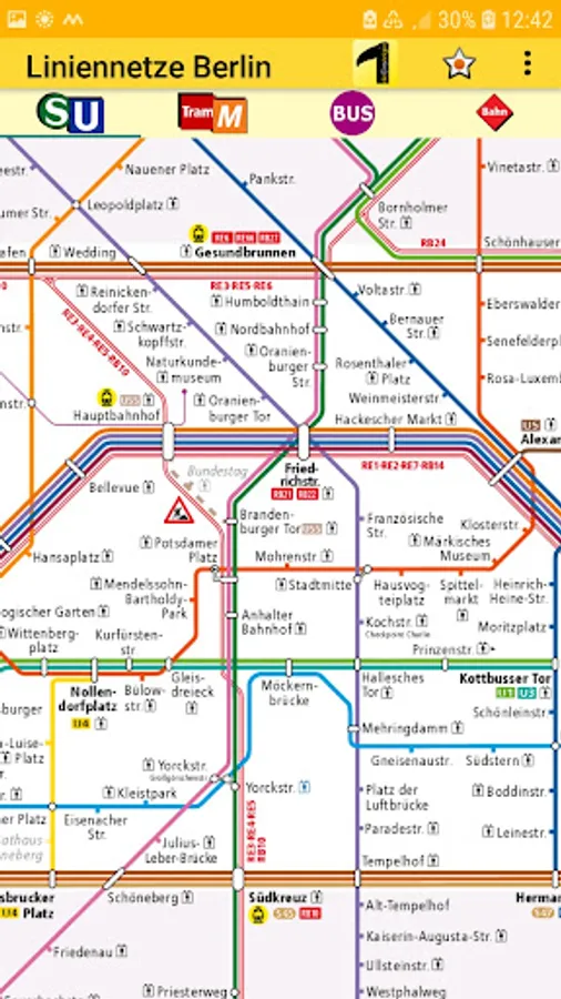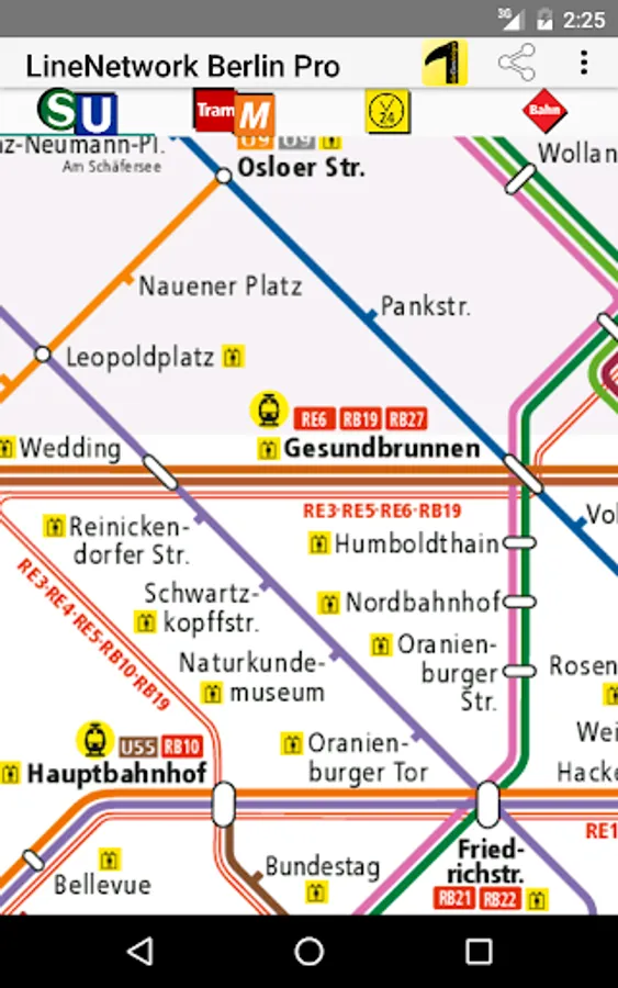 All network maps are suitable for local public transport (LPT) in the Berlin tariff area ABC and for the regional transport of Brandenburg and Berlin (VBB). The app includes the route network for S-Bahn, U-Bahn, Metrotram, Tram, Regionalbahn and Metrobus.