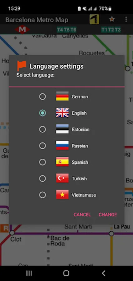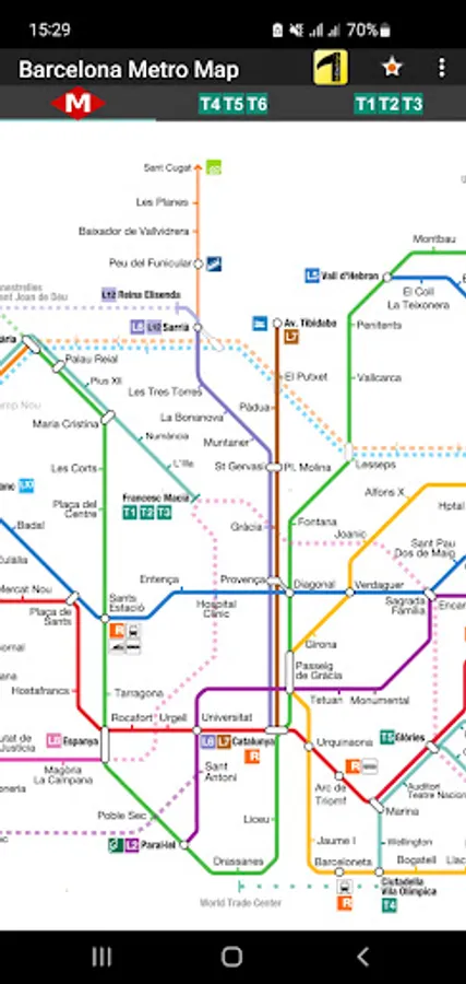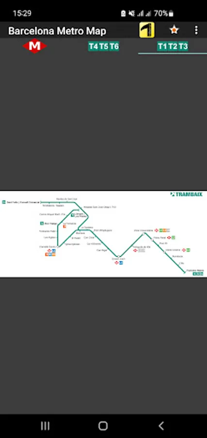 • map of the Trambaix network (tramway line T1, T2 and T3)