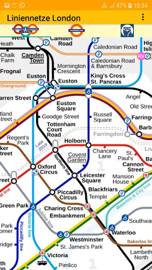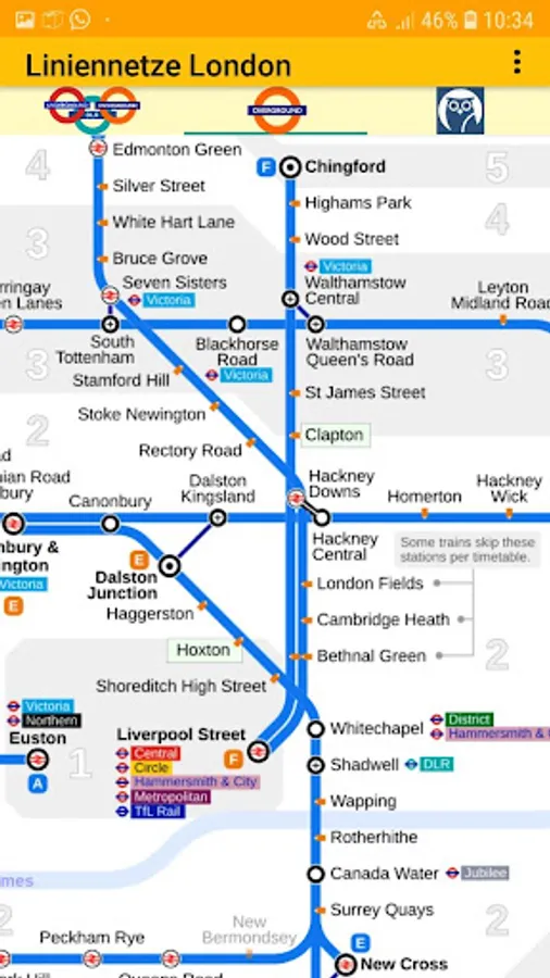 All network maps are suitable for local public transport (LPT) in the London tariff area. The app includes the route network for underground (the Underground, the Tube), overground, night tube, tramlink and docklands Light Railway (DLR).