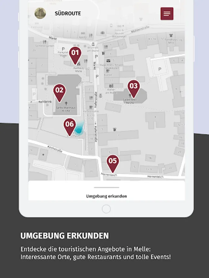 The app takes you on two independent tours through the city of Melle and tells you its history - in a completely new, exciting and particularly entertaining way: with a total of nine virtual guides, the history of the city of Melle becomes an experience.