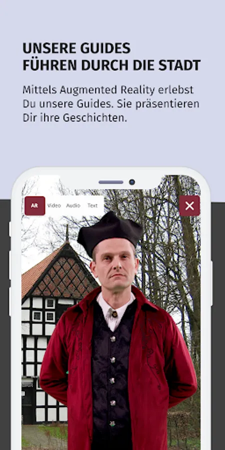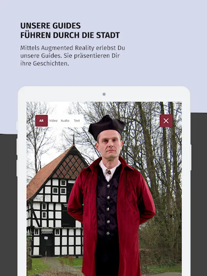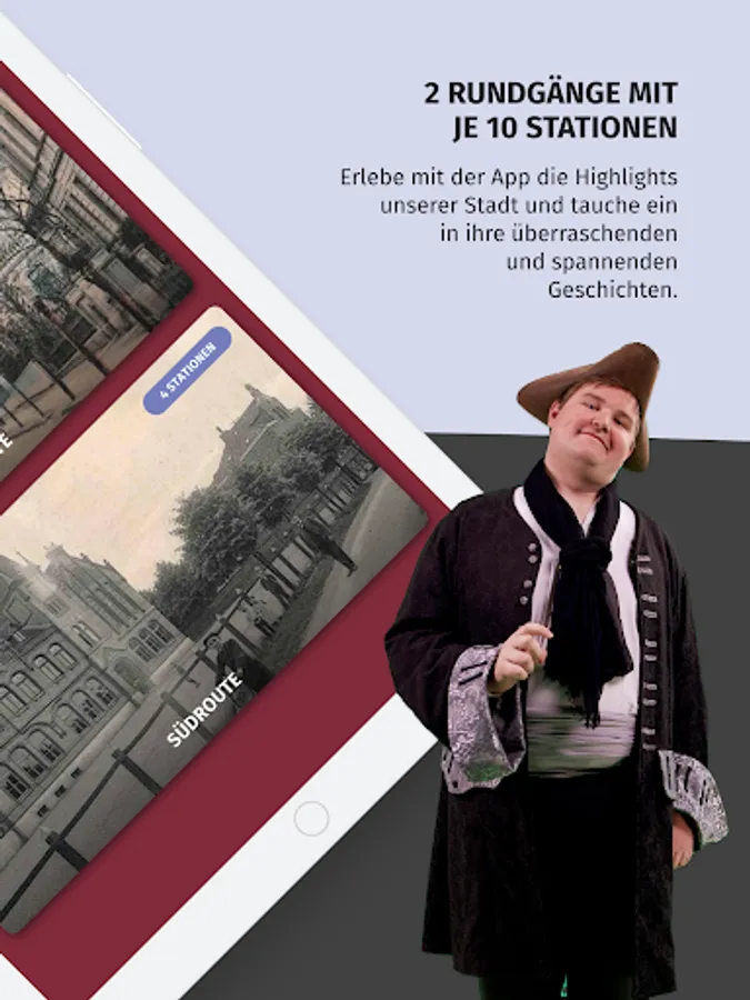 The app uses augmented reality in a variety of ways: In addition to the appearances of the virtual guides, it offers you selfie stations to share in social media and quizzes for interaction. You can explore some places in the city with 360-degree shots, others with impressive historical photographs. Information transfer, smartly presented: You can have texts read to you.