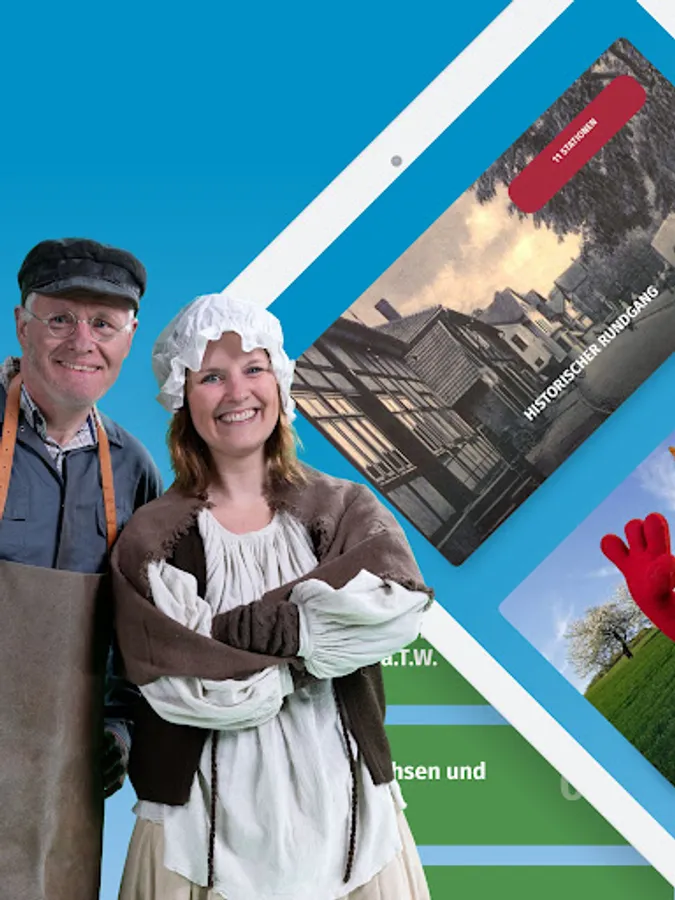 It uses augmented reality* in a variety of ways: In addition to the appearances of the virtual guides Gero, Lisbeth and Heinrich, it offers you selfie stations to share in social media and quiz offers for interaction. You can explore some stations with 360-degree shots, others with impressive historical photographs. Information transfer, smartly presented: You can have the texts read to you.