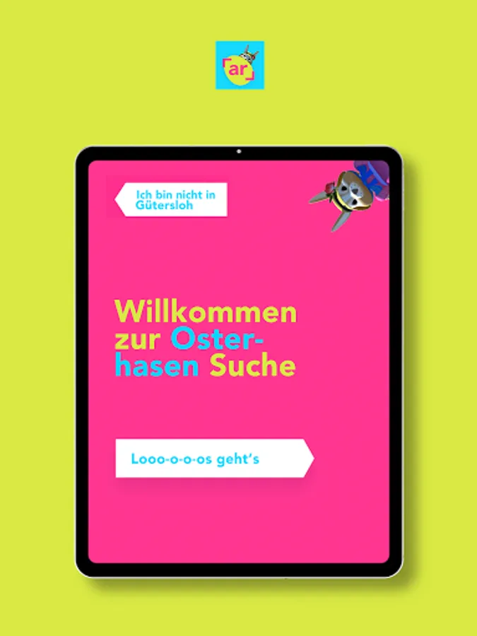 With the "OsterGlück Gütersloh" app, you have the opportunity to go on a virtual rabbit hunt in downtown Gütersloh. At selected locations, animated Easter bunnies appear on your smartphone via the AR app. You have to catch them and put together a solution word in order to take part in a competition at the end of the game with lots of great prizes. Discover the city with this entertaining augmented reality game and find out more about Gütersloh with this app.