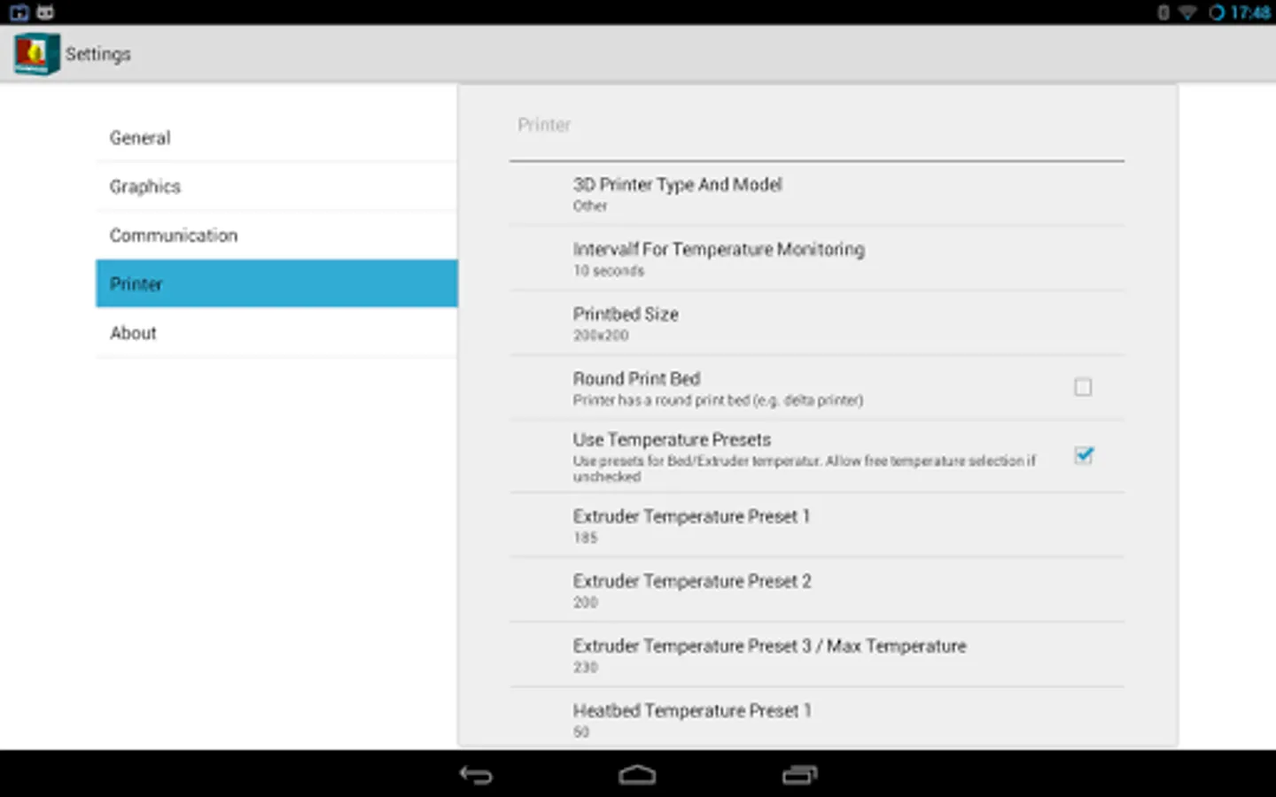 ✔ Connect to the 3D Printer over USB (USB-OTG Adapter required) or wireless (Bluetooth)