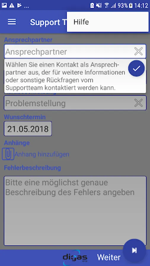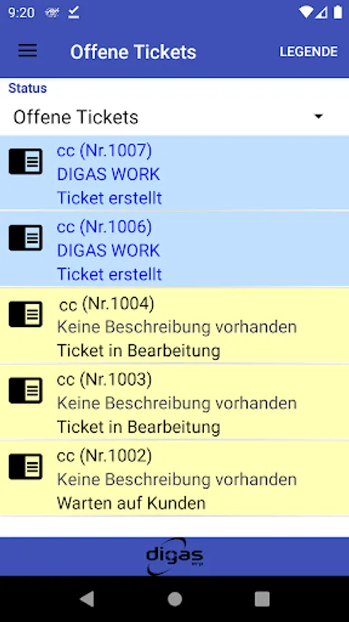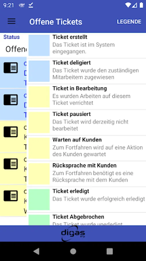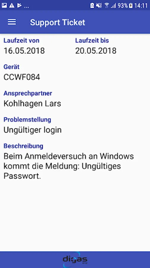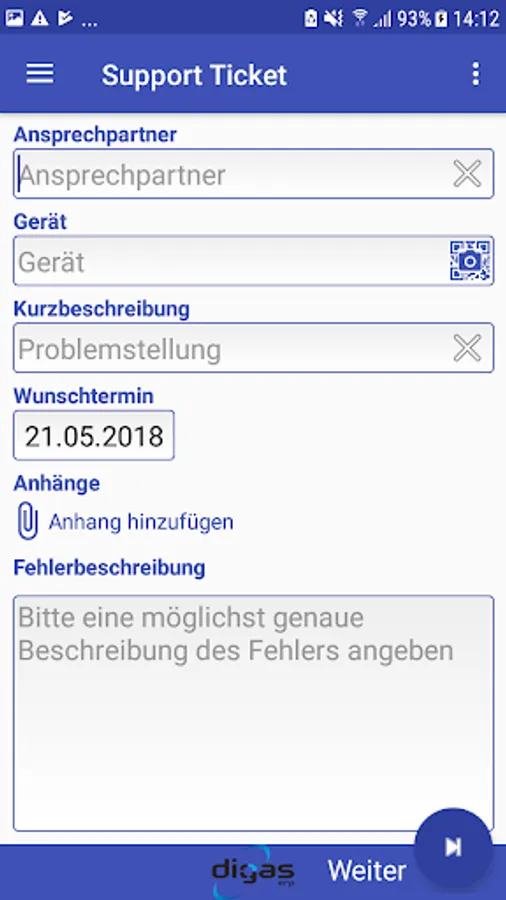 With the DIGAS Ticket app, you can create mobile support tickets.