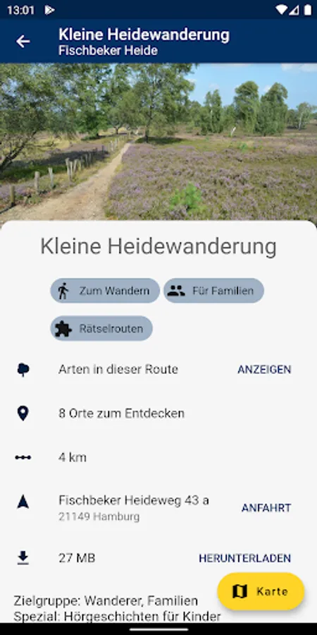 Simply a nature reserve choose to download a route and off we go. The interactive, GPS-enabled map shows the route and where you are. At selected locations, the app reports and becomes the audio guide. With a colorful Infomix, many sights and sounds the app what to watch in Hamburg's nature reserves and is worth protecting explained.